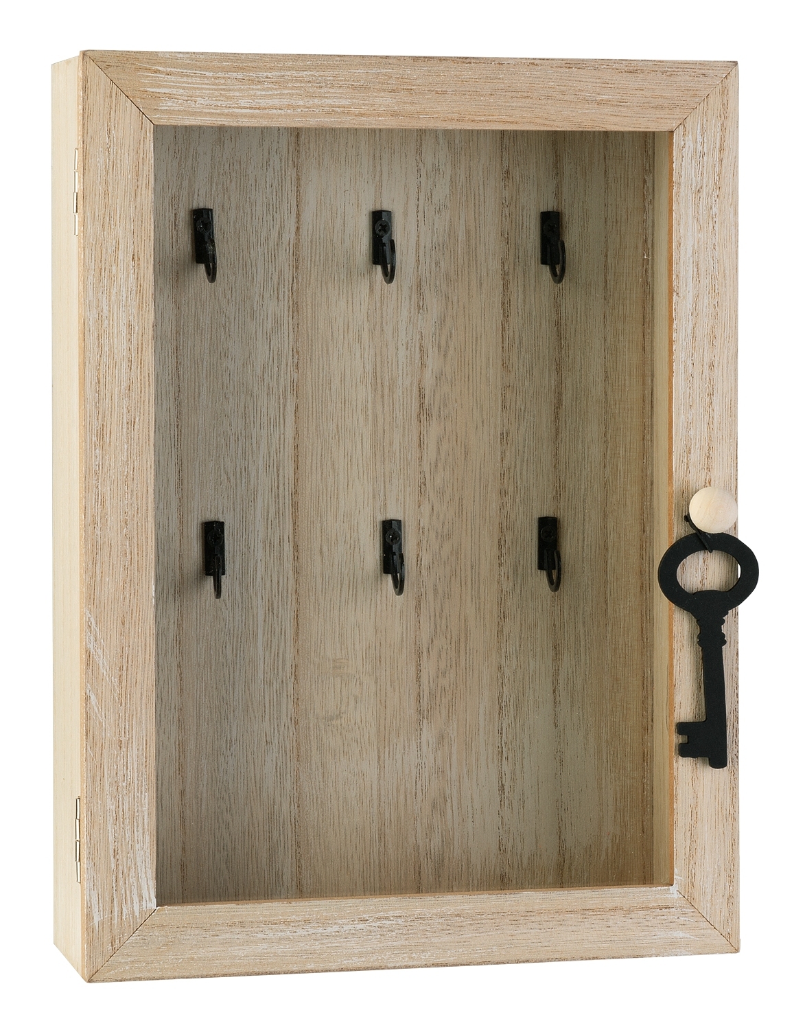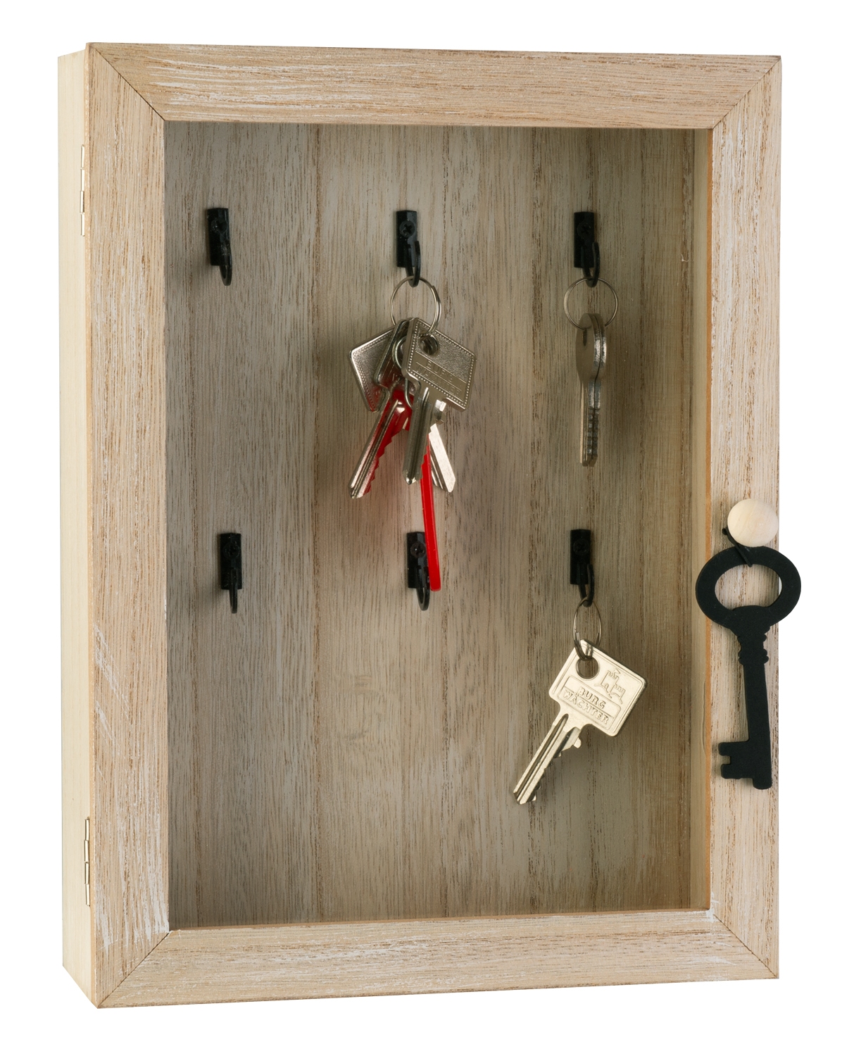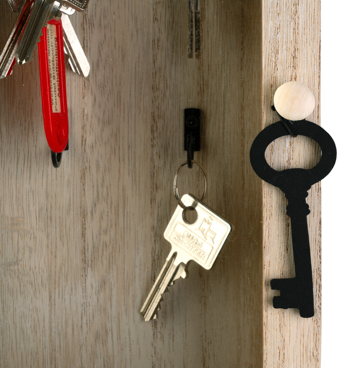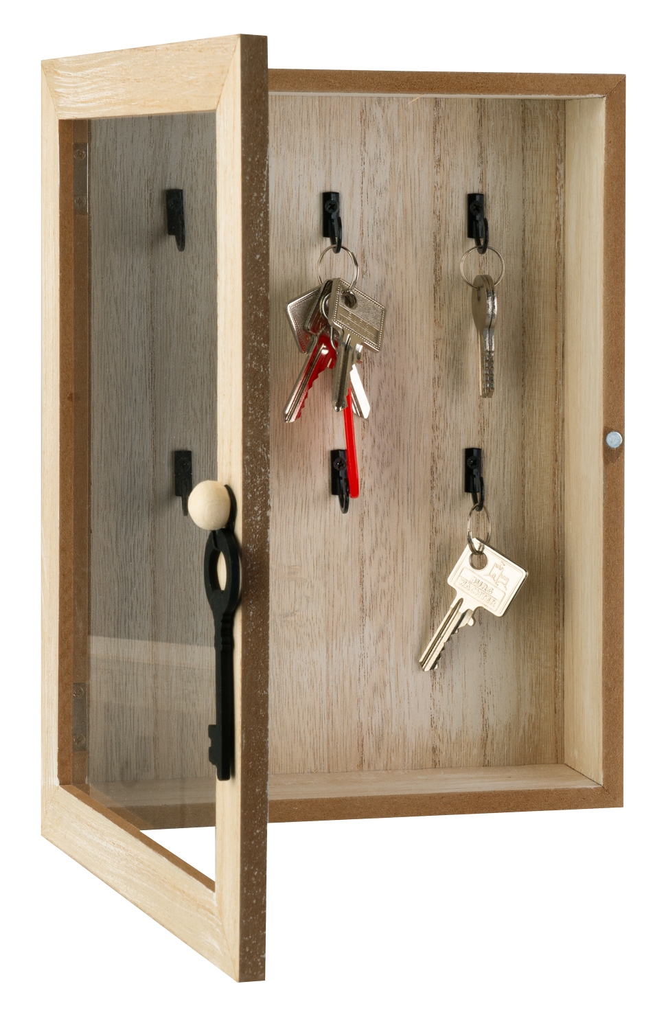 Die Türe wird mithilfe eines Magneten verschlossen und ist zum einfachen Öffnen mit einem kleinen Türknauf ausgestattet. Der Schlüsselkasten kann an die Wand gehängt werden. So lässt er viel Spielraum bei den individuellen Einrichtungswünschen.