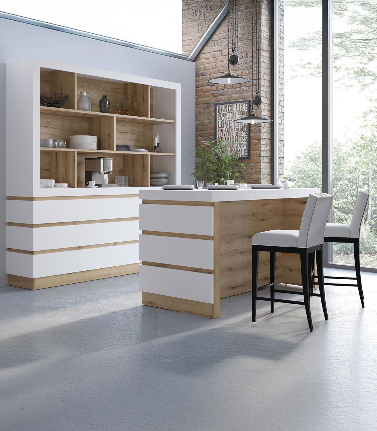 201 x 119 cm - 8 Ablagefächer - Alpinweiß - Evoke Eiche Dekor