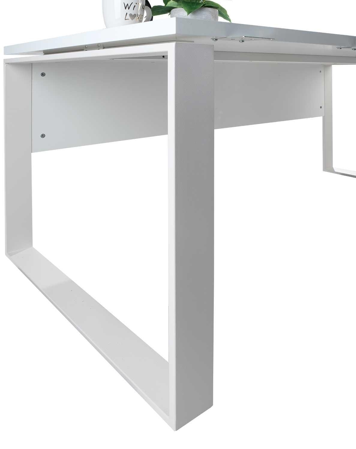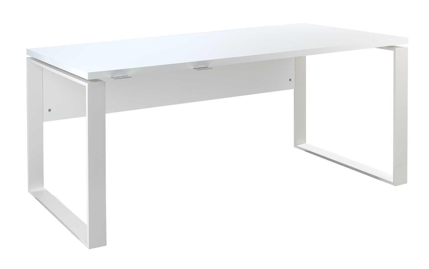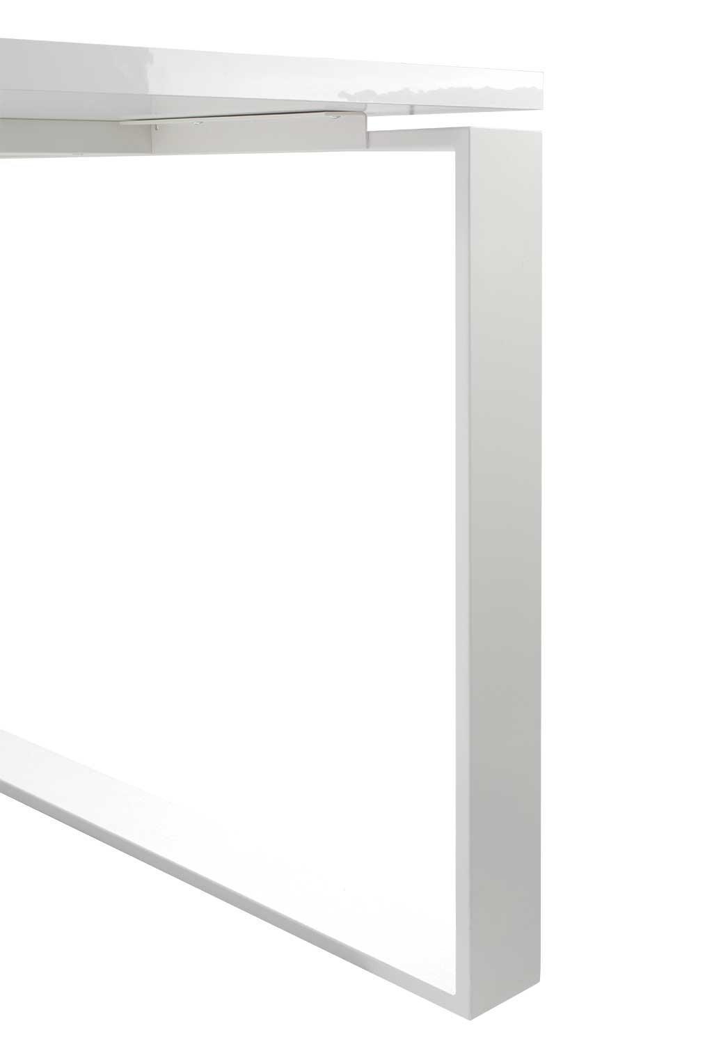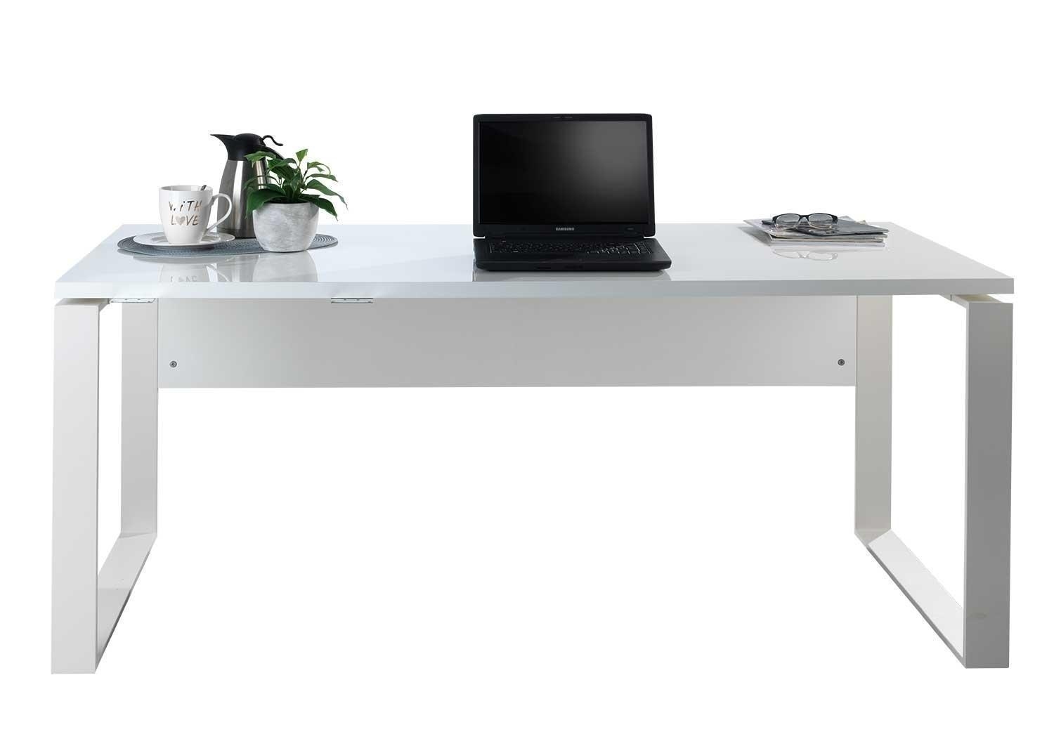 Der Schreibtisch DELA ist in Weiß gehalten und hat eine Breite von 170 cm, eine Höhe von 75 cm und eine Tiefe von 80 cm. Die Tischplatte ist in Weiß Hochglanz und das Gestell in weiß lackiertem Metall ausgeführt. Der Schreibtisch bietet ausreichend Ablagefläche und ist für den Einsatz im Büro oder Homeoffice geeignet.