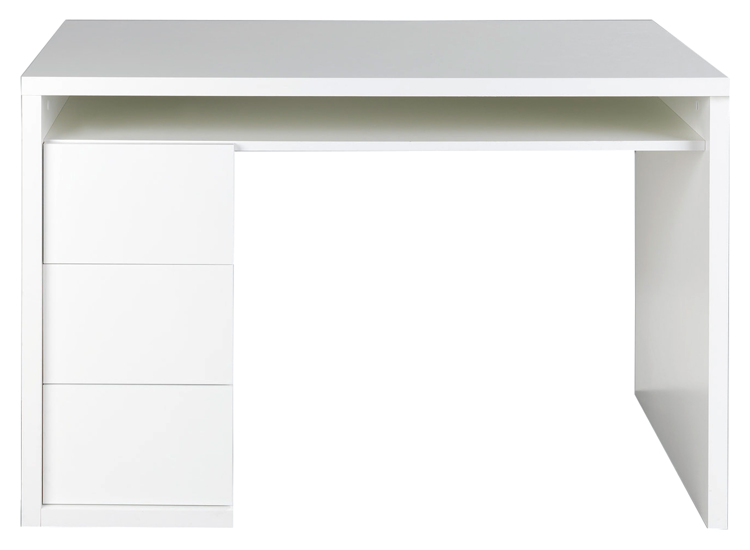 Weiß, klar, dezent und praktisch - das ist der Schreibtisch Morten. Verarbeitung und Material Der Schreibtisch ist einheitlich weiß in einer Hochglanzausführung, lediglich die Rückseite ist weiß matt. Auf der Oberfläche ist ordentlich Platz für PC oder Laptop, Telefon, Tischleuchte und natürlich freie Arbeitsfläche. Die Tastatur könnte beispielsweise in der unteren Ablage platziert werden, aber auch andere Arbeitsmaterialien passen wunderbar hinein. Die drei großräumigen Schubkästen bieten weiteren Stauraum für alles was in die Nähe so eines Schreibtischs gehört: Blöcke, Tacker, Locher, Büroklammern und vieles mehr... Genießen Sie große Vorzüge zum kleinen Preis.