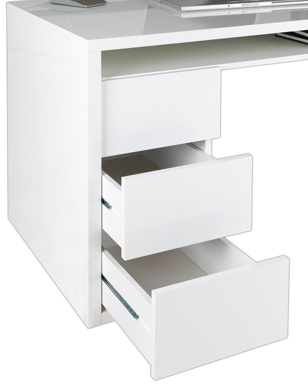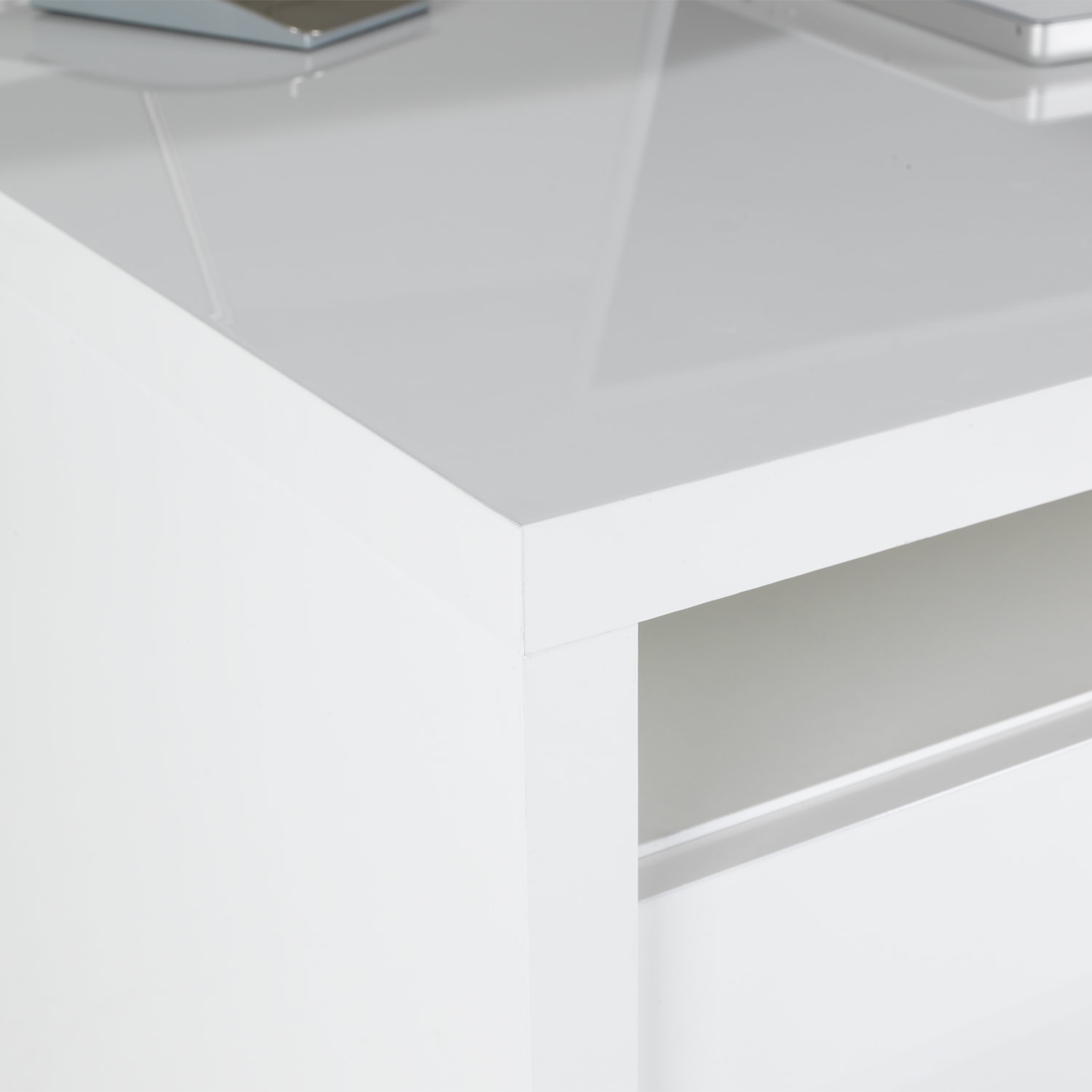 | Lieferumfang: | 1 Schreibtisch, teils Hochglanz, teils matt weiß |