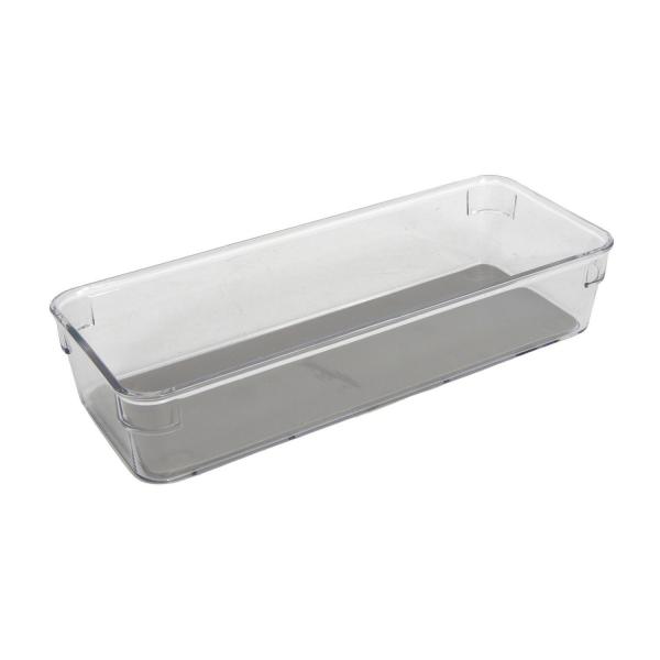 Der Schubladen-Organizer ORGELLA besteht aus transparentem Kunststoff und eignet sich zur geordneten Aufbewahrung von Kleinteilen und Küchenzubehör. Er ist mit einem rutschfesten Boden ausgestattet, der für einen sicheren Halt in der Schublade sorgt. Die Maße betragen 23 cm in der Breite, 5 cm in der Höhe und 9 cm in der Tiefe.