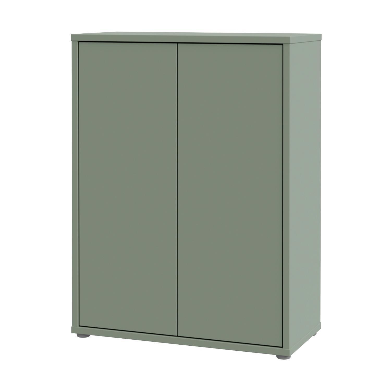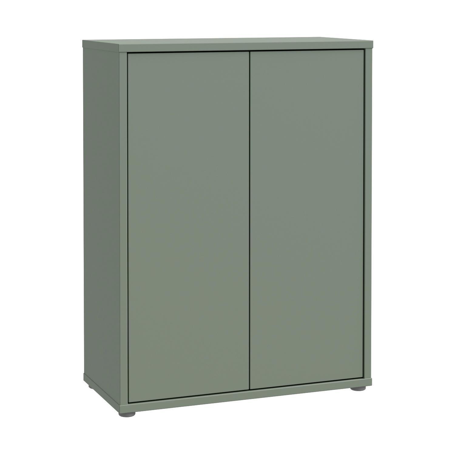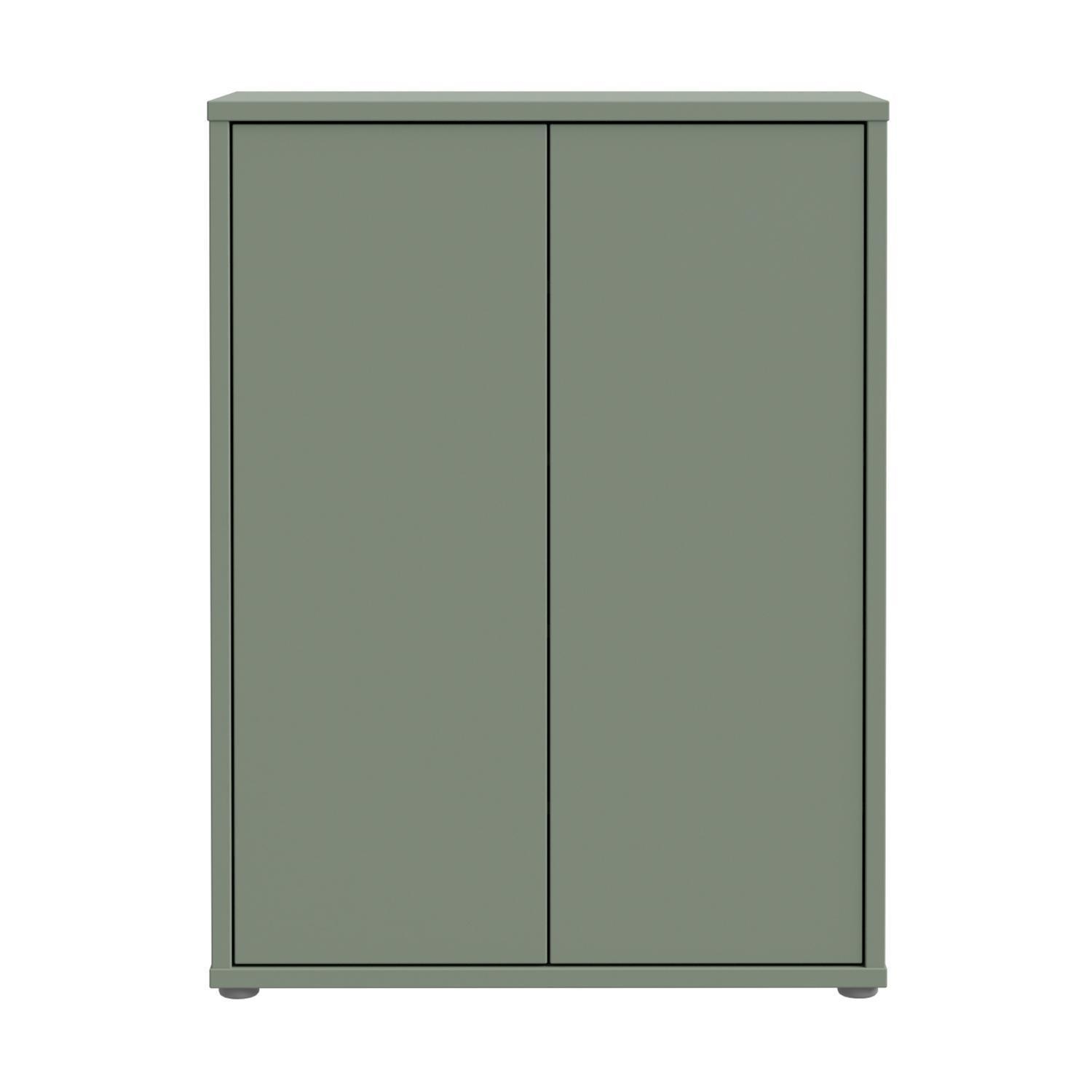 Der Schuhschrank AIDEN ist in einem ansprechenden Salbeigrün gefertigt. Er verfügt über zwei Türen, die sich dank der integrierten Push-to-Open-Funktion grifflos öffnen lassen. Im Inneren befinden sich vier Einlegeböden, die eine strukturierte und platzsparende Aufbewahrung von Schuhen ermöglichen. Der Schrank hat eine Breite von 75 cm, eine Höhe von 99 cm und eine Tiefe von 35 cm.