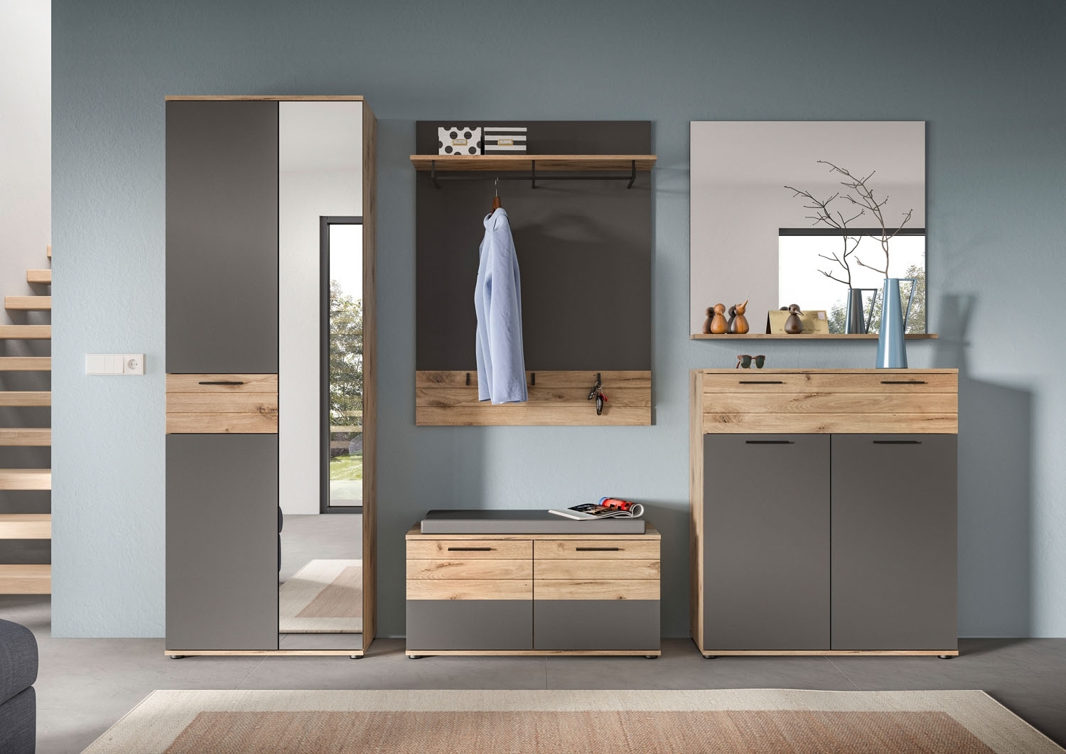 Nox Eiche Dekor - Basaltgrau - B 90 cm - 2 Türen - 1 Schublade
