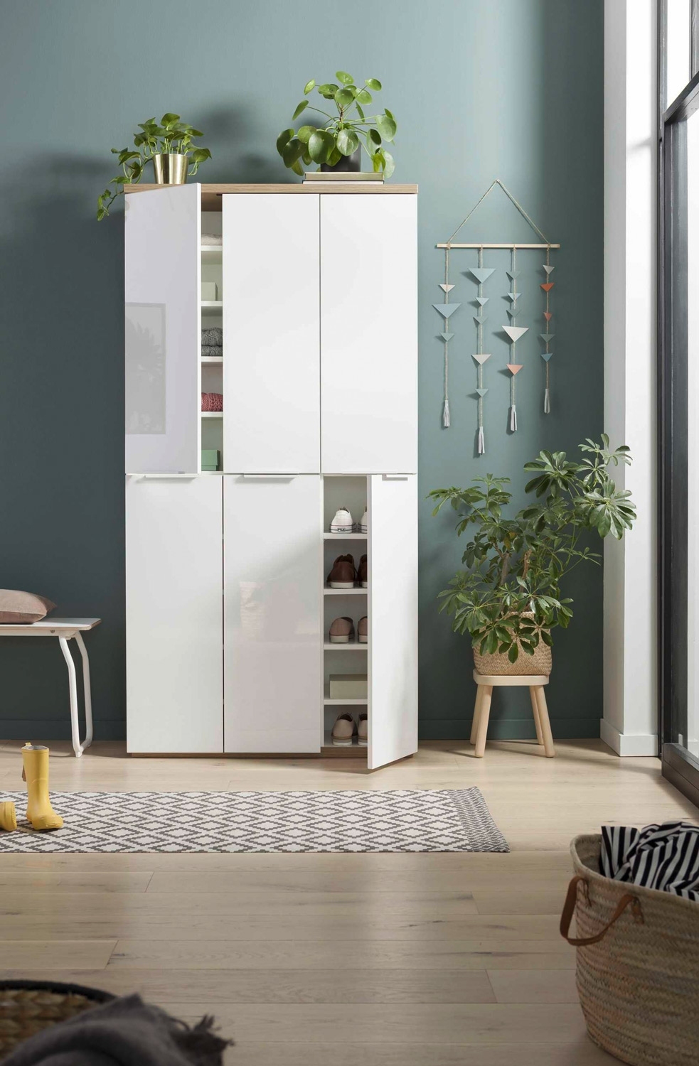 | Lieferumfang: | 1 Schuhschrank mit 6 Türen und 16 höhenverstellbaren Einlegeböden |
