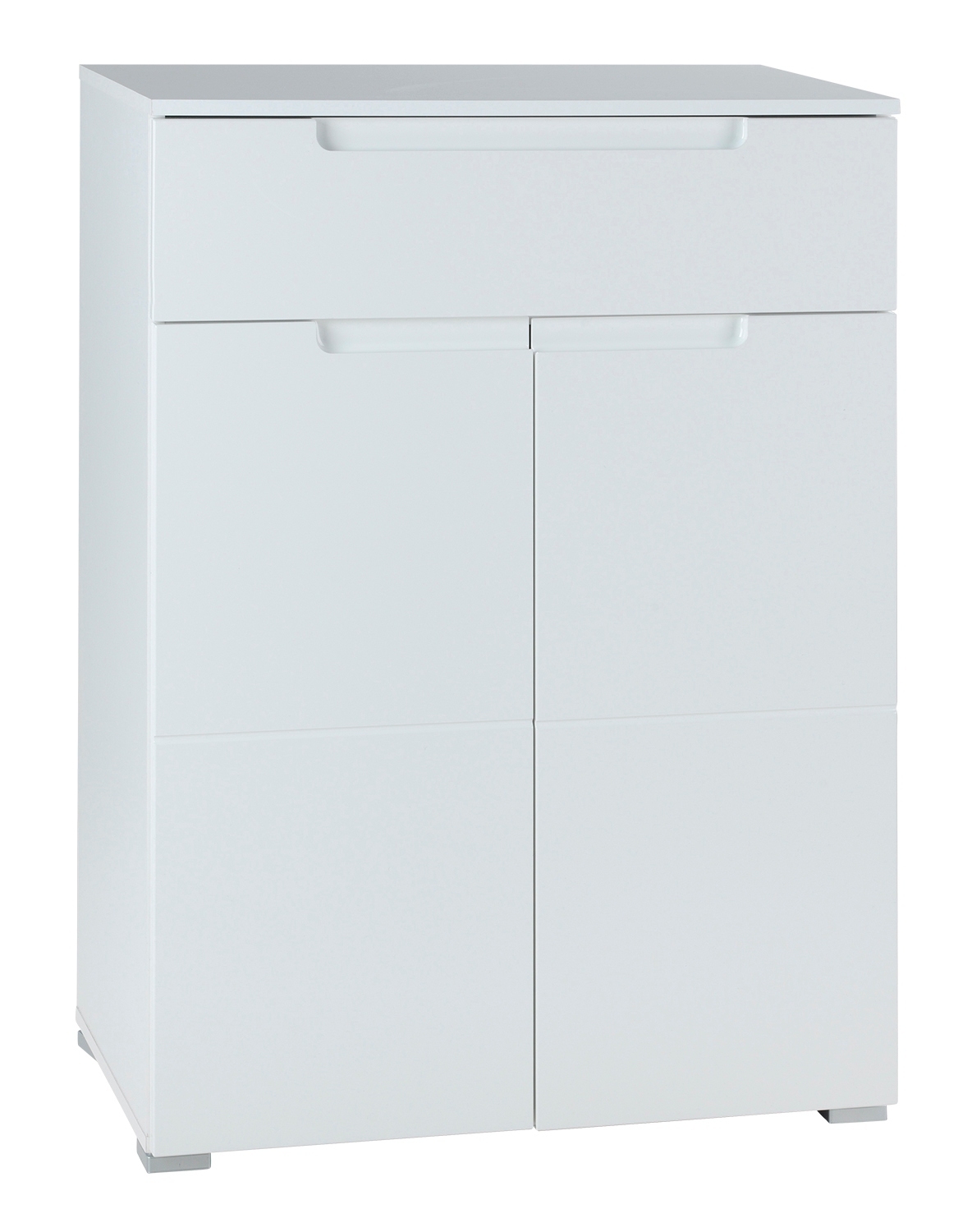 B 70 cm - 2 Türen - 1 Schublade - Weiß Hochglanz - Weiß matt