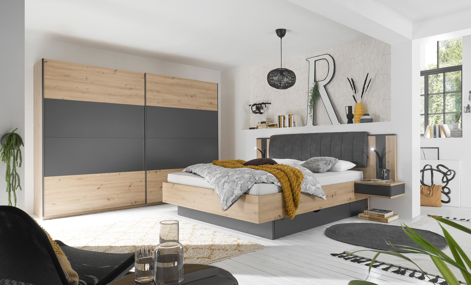 - Schwebetürenschrank in Artisan Eiche Dekor