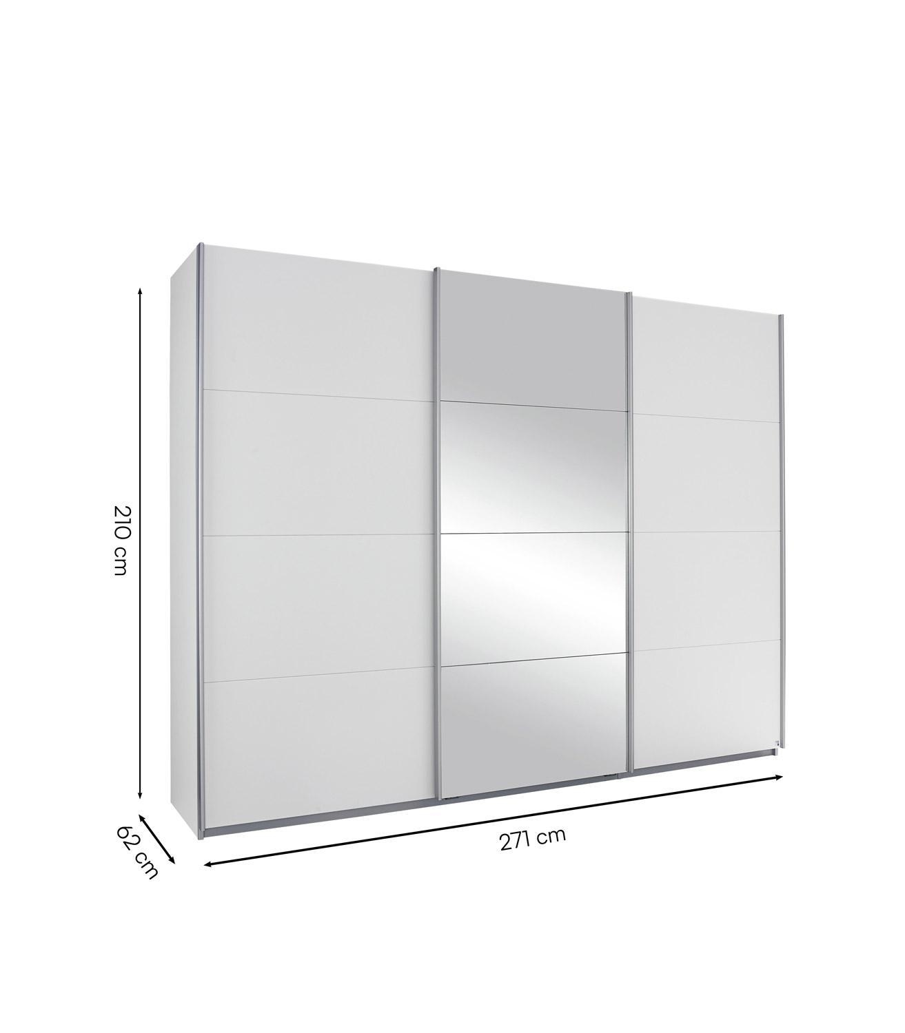 Weiß - 271 x 210 cm - 3 Türen - Spiegel