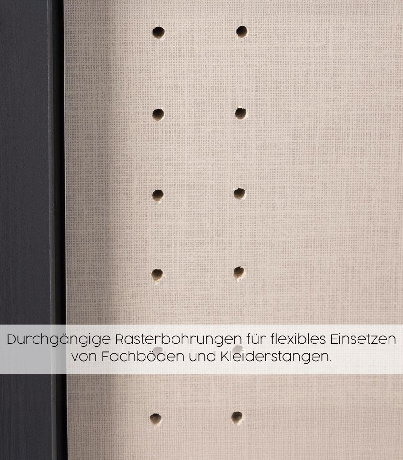 | Lieferumfang: | 1 Kleiderschrank mit Griffleisten, 3 Einlegeböden und 3 Kleiderstangen |