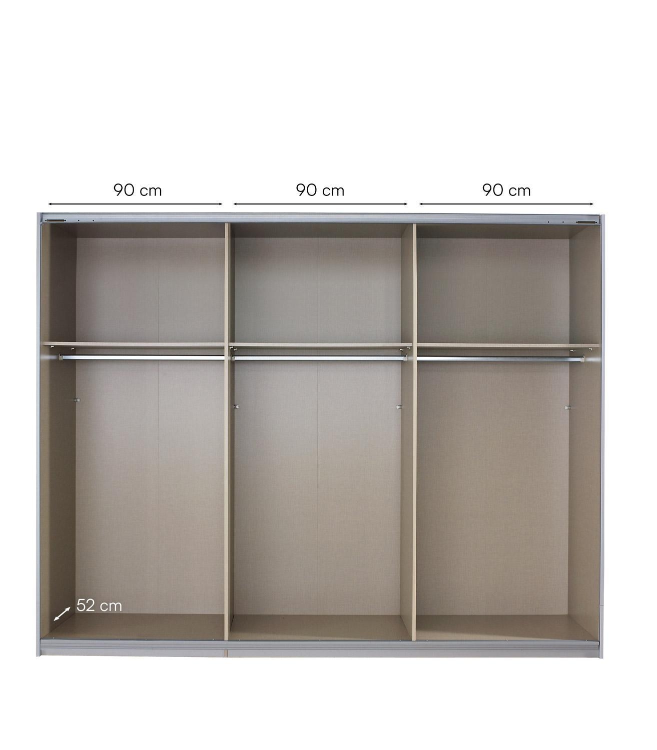 | Lieferumfang: | 1 Schwebetürenschrank mit 2 Türen, 3 Einlegeböden und 3 Kleiderstangen |