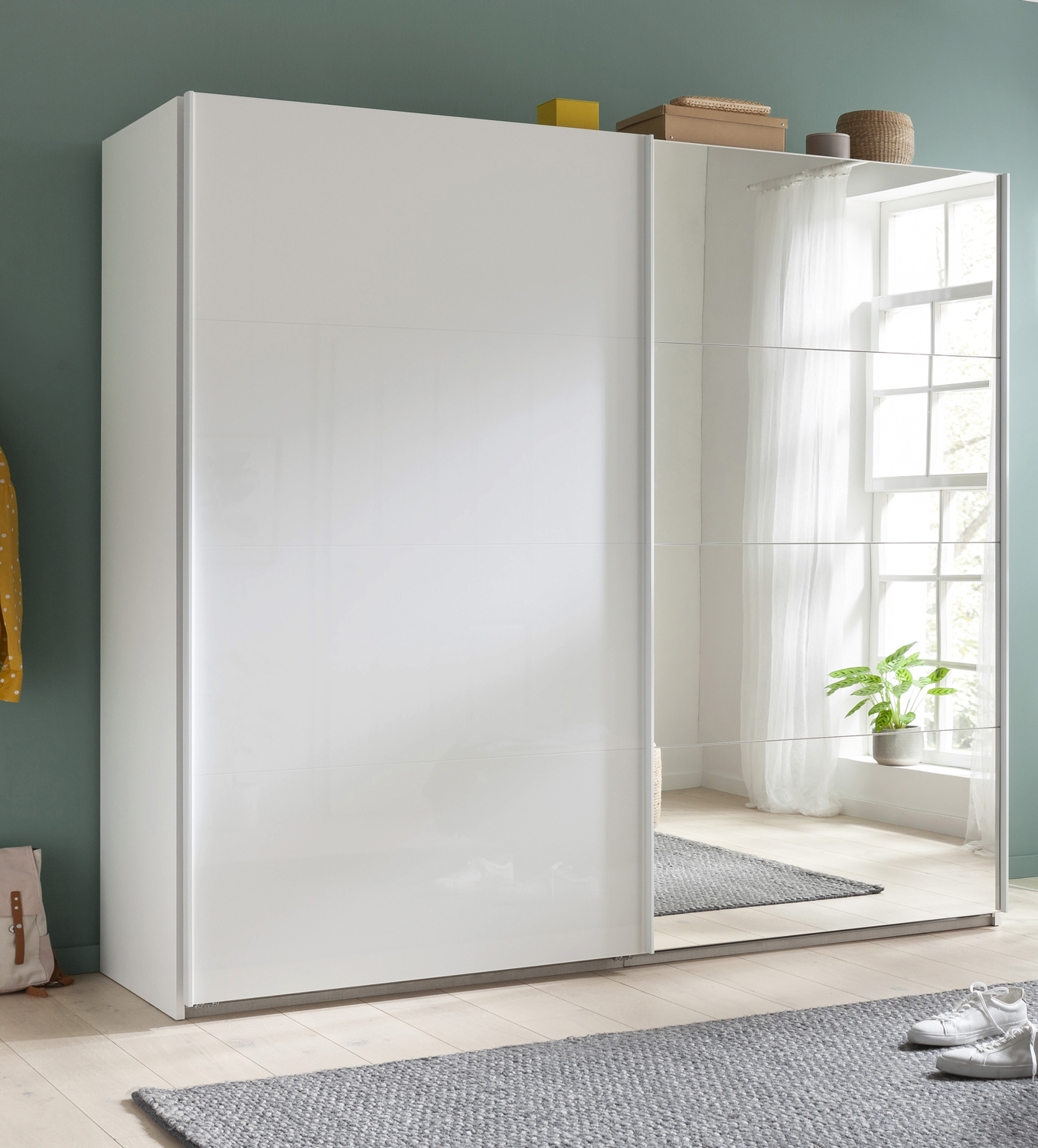 | Lieferumfang: | 1 Schwebetürenschrank mit 1 Tür, 1 Spiegeltür, 2 Einlegeböden und 2 Kleiderstangen |