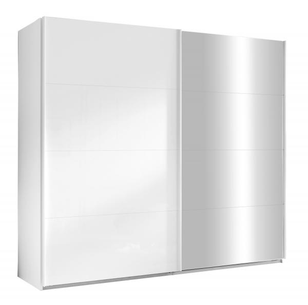 Entdecken Sie Eleganz und Funktionalität mit unserem Schwebetürenschrank. In zeitlosem Weiß, 250 cm breit, 223 cm hoch und 60 cm tief, vereint er Stil mit praktischem Stauraum. Eine hochglänzende Front und matte Korpusoberflächen verleihen ihm eine moderne Note. Genießen Sie die Vielseitigkeit mit Einlegeböden, Kleiderstangen, Spiegel und Türen. Ein Möbelstück, das Ihre Räume bereichert.