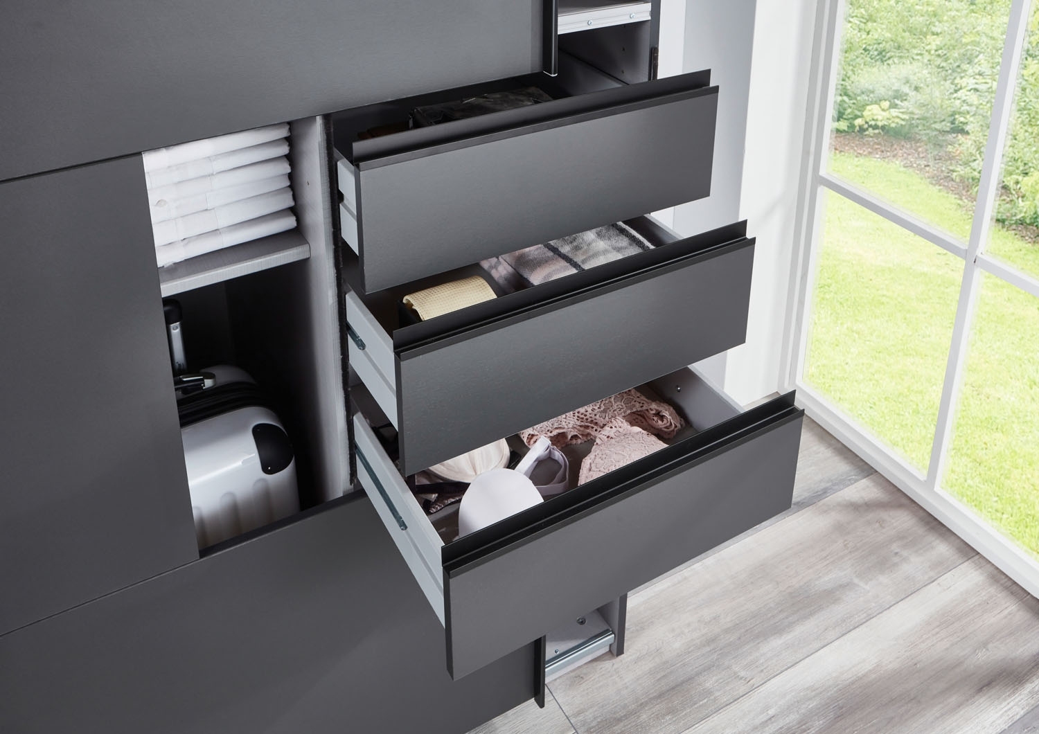 - Schwebetürenschrank in Graphit matt Dekor