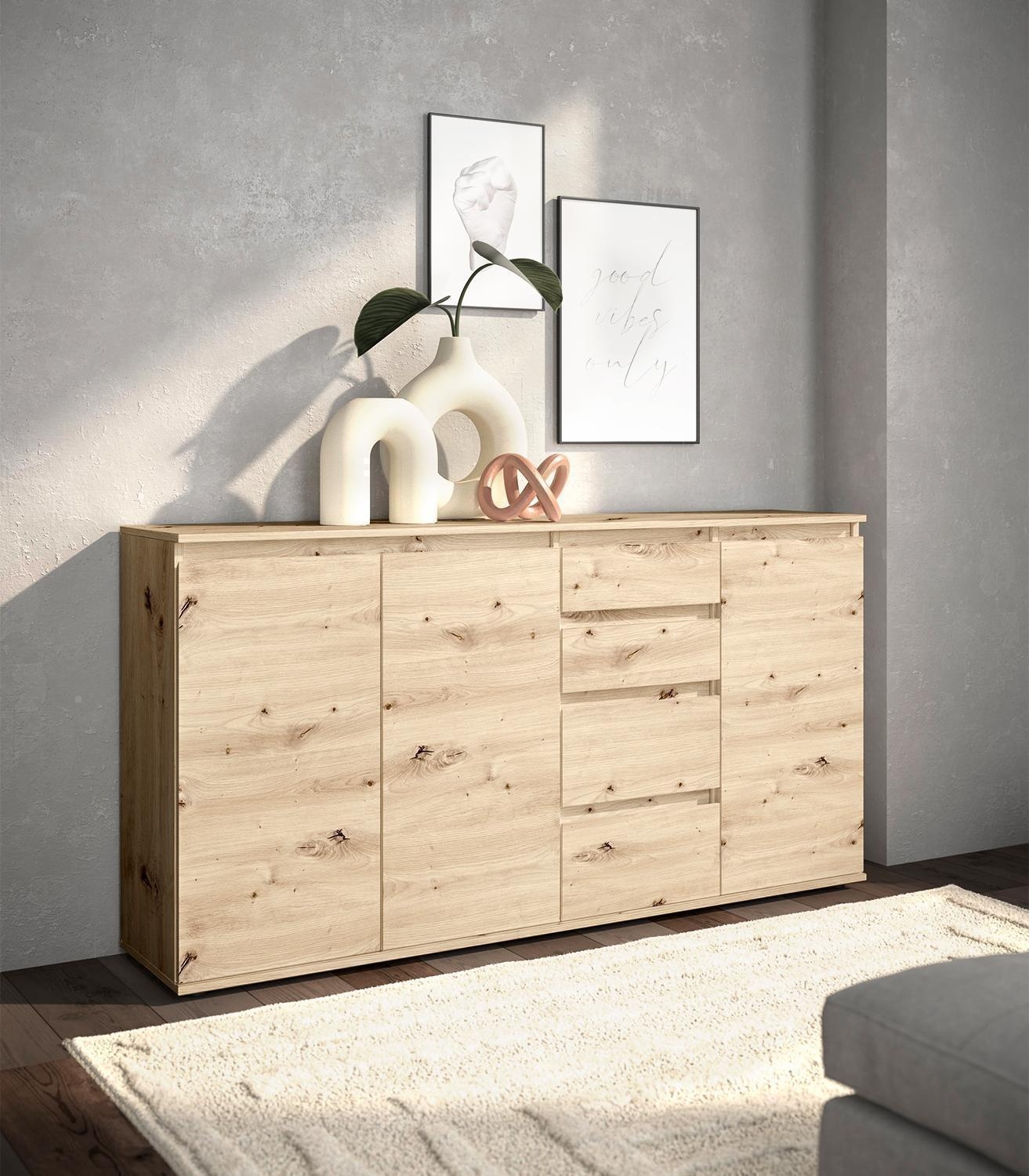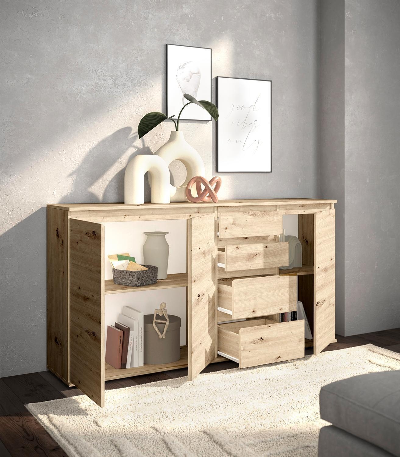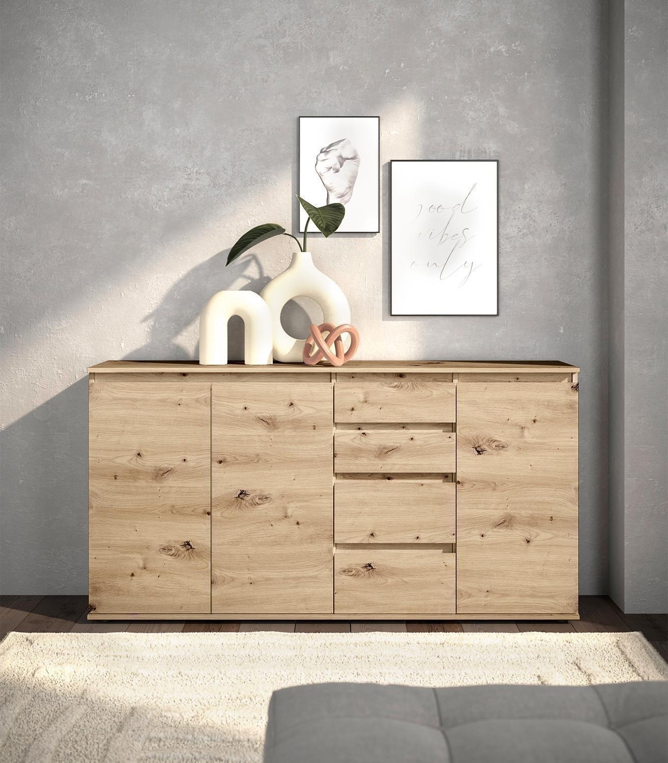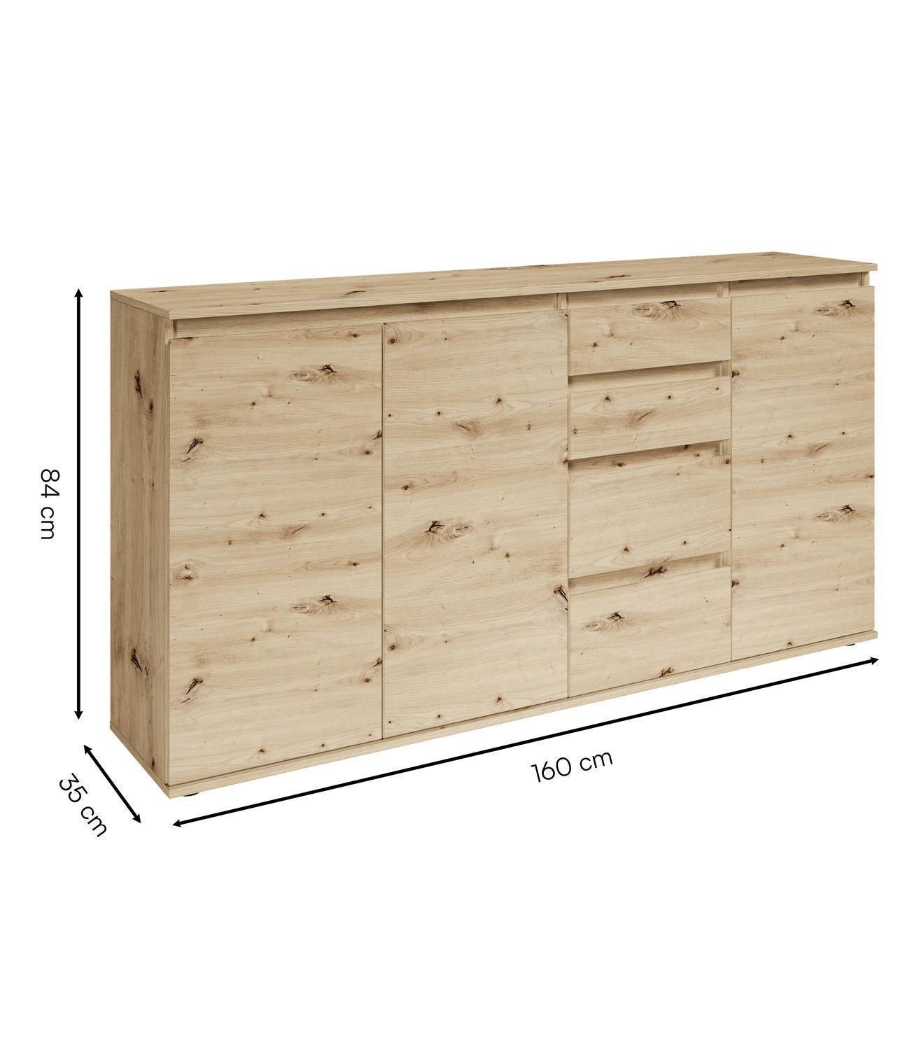 160 x 84 cm - 3 Türen - 4 Schubladen - Artisan Eiche Dekor