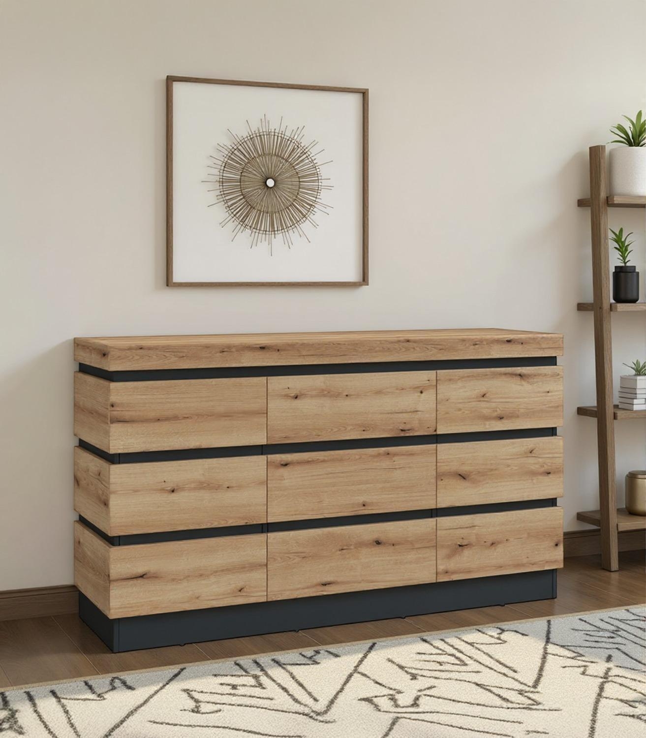 Coast Evoke Eiche Dekor - Grau - B 160 cm - 3 Türen - 1 Schublade