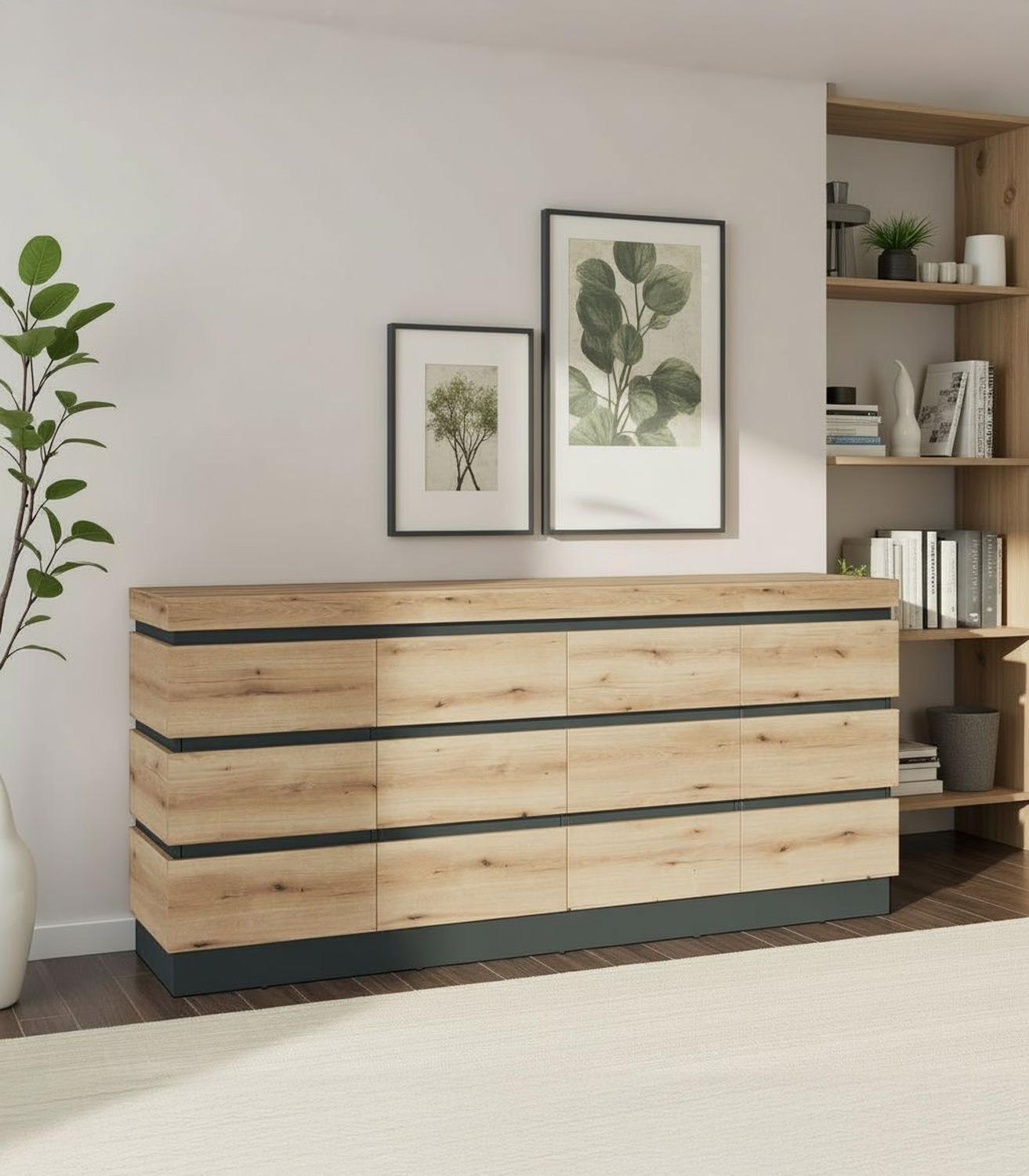 Coast Evoke Eiche Dekor - Grau - B 201 cm - 4 Türen - 2 Schubladen