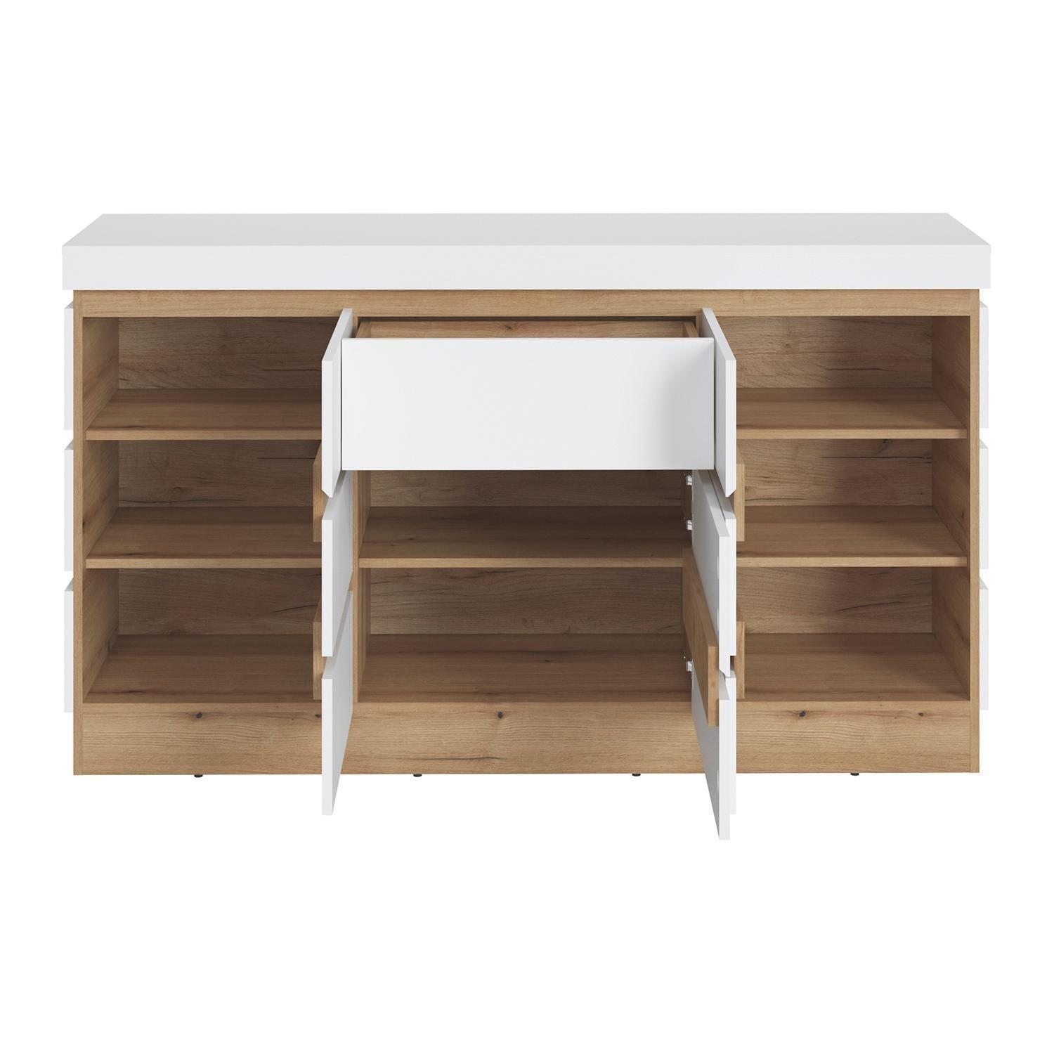 161 x 93 cm - 3 Türen - 1 Schublade - Alpinweiß - Evoke Eiche Dekor