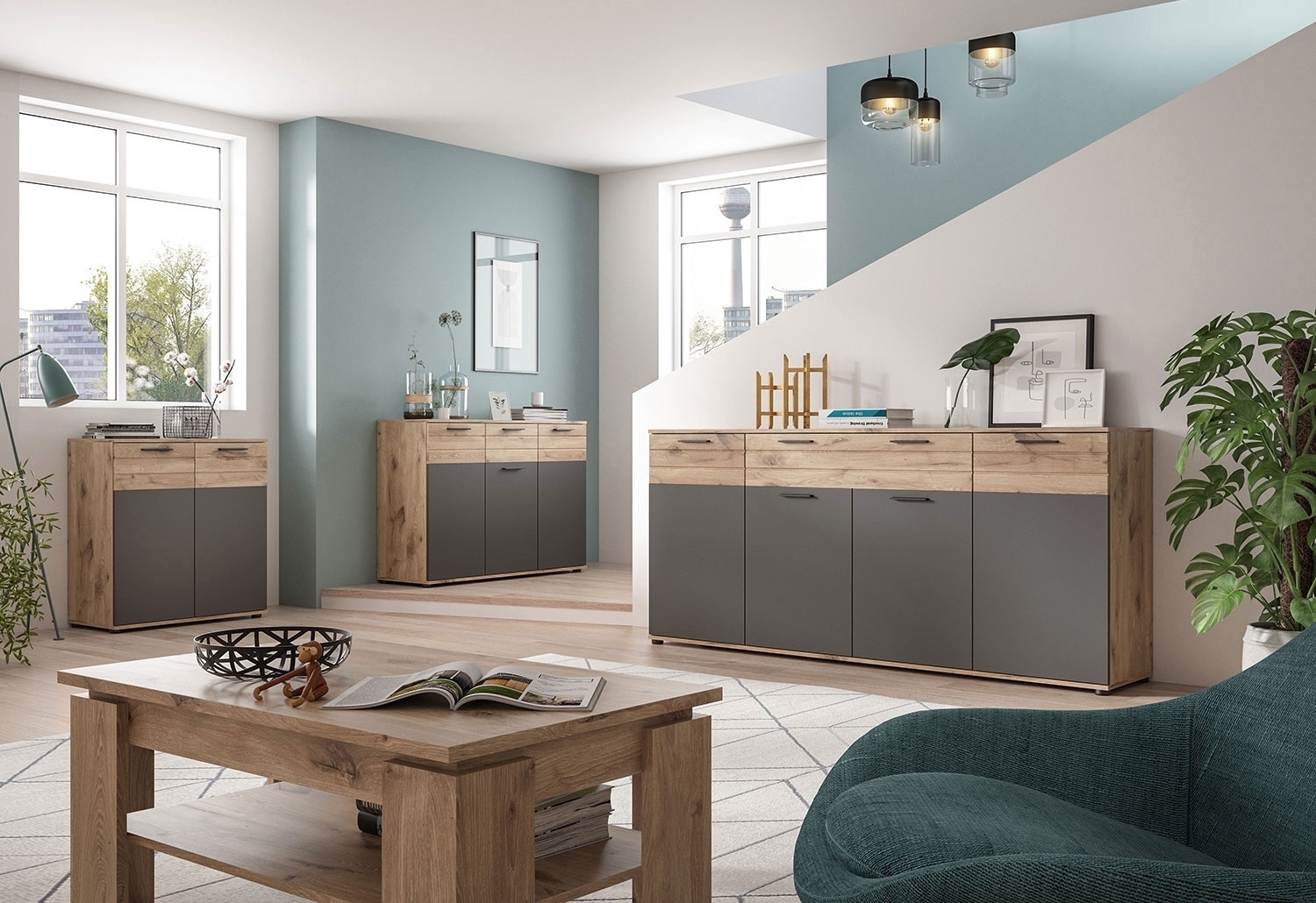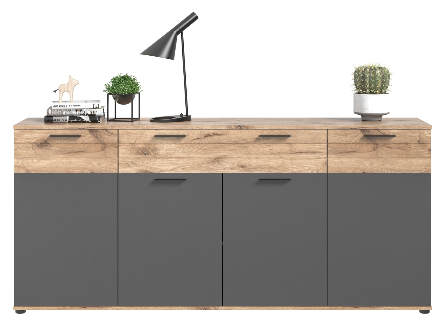 | Lieferumfang: | 1 Sideboard mit 4 Türen und 1 Schublade mit Soft-Close-Funktion und 5 Einlegeböden |
