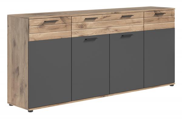 Nox Eiche Dekor - Grau matt - B 200 cm - 4 Türen - 1 Schublade