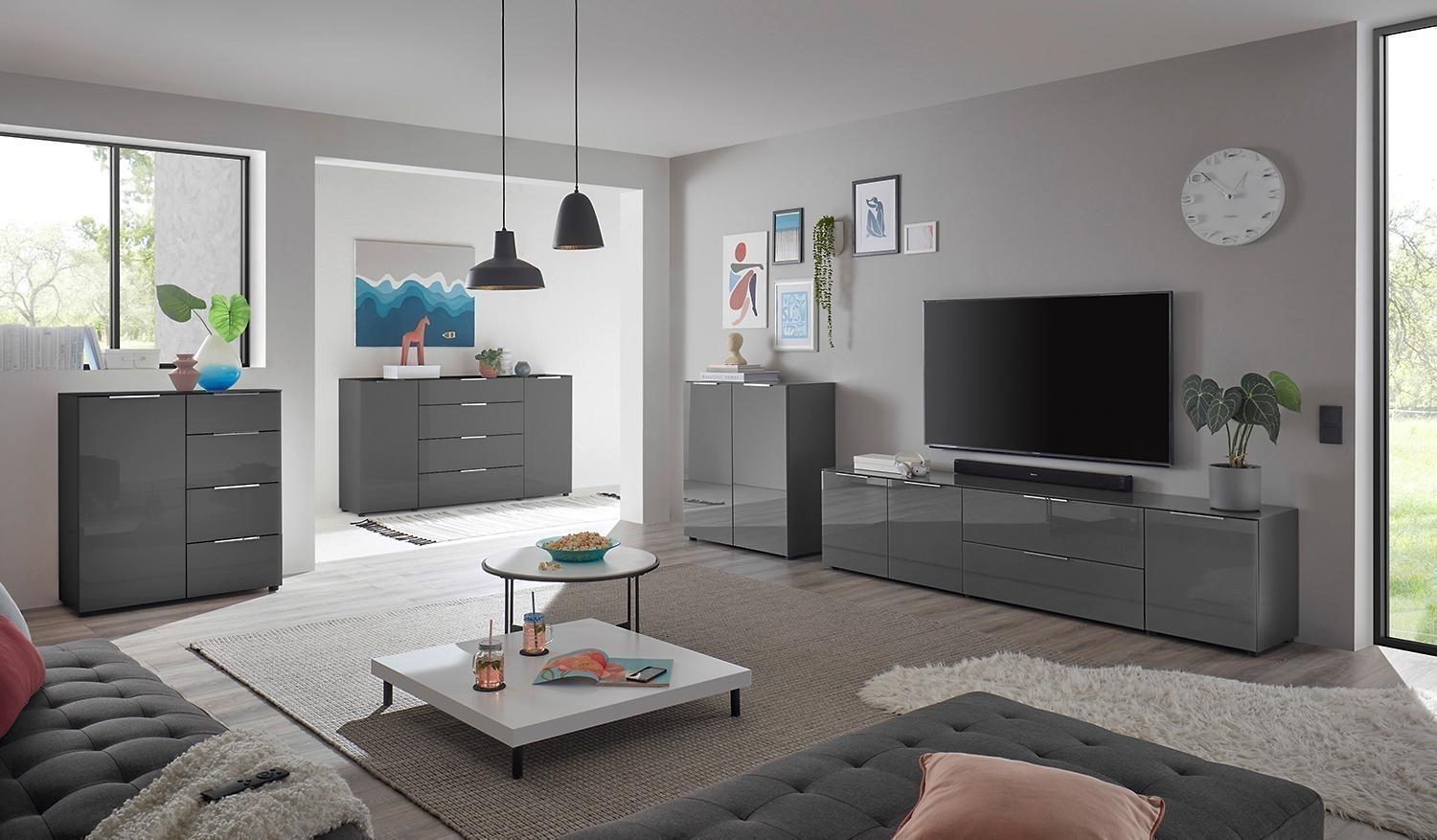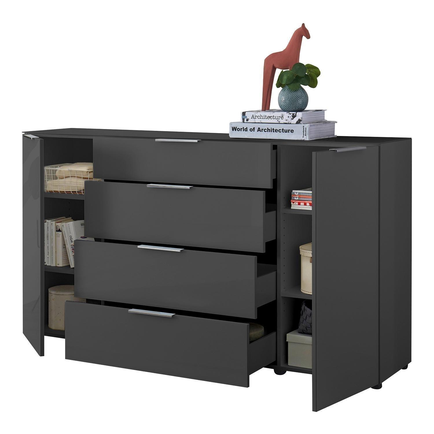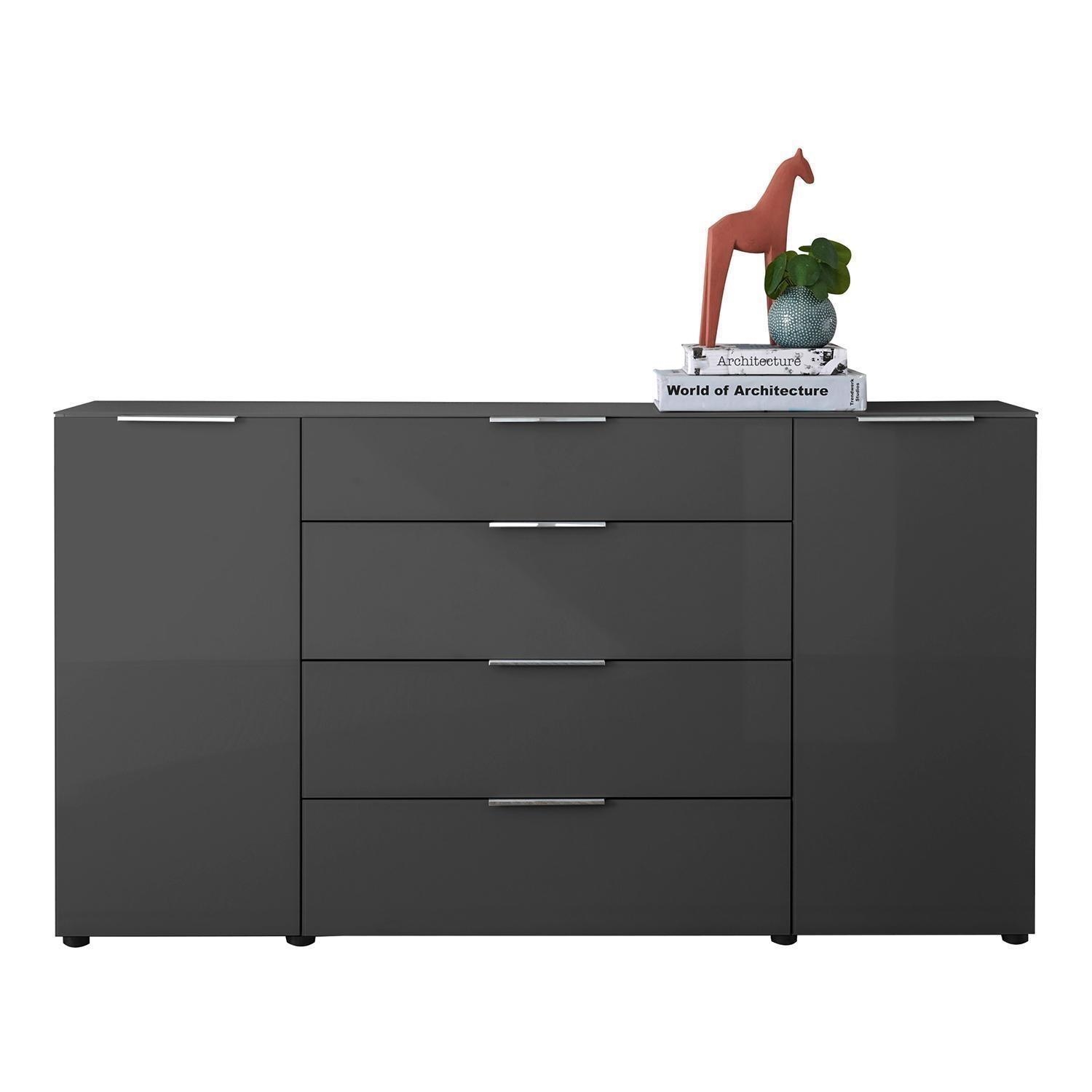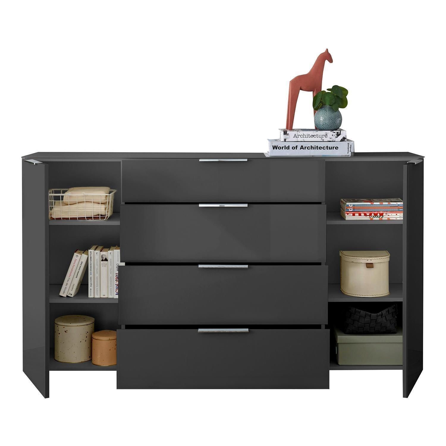 180 x 99 cm - 2 Türen - 4 Schubladen - Anthrazitglas - Anthrazit matt