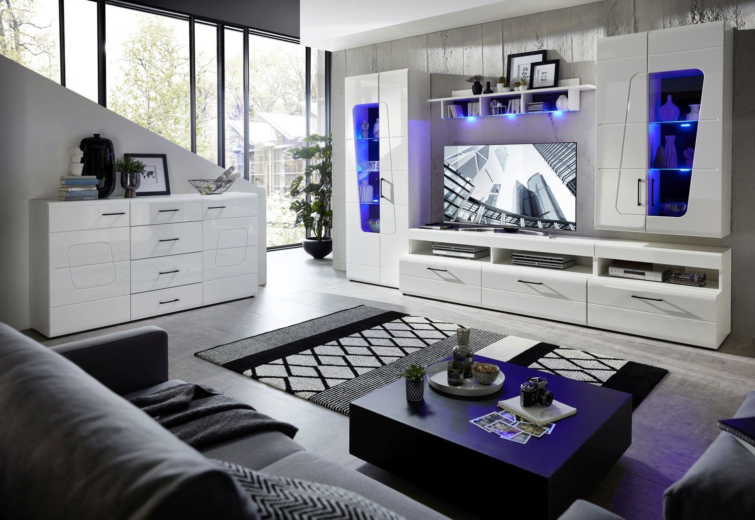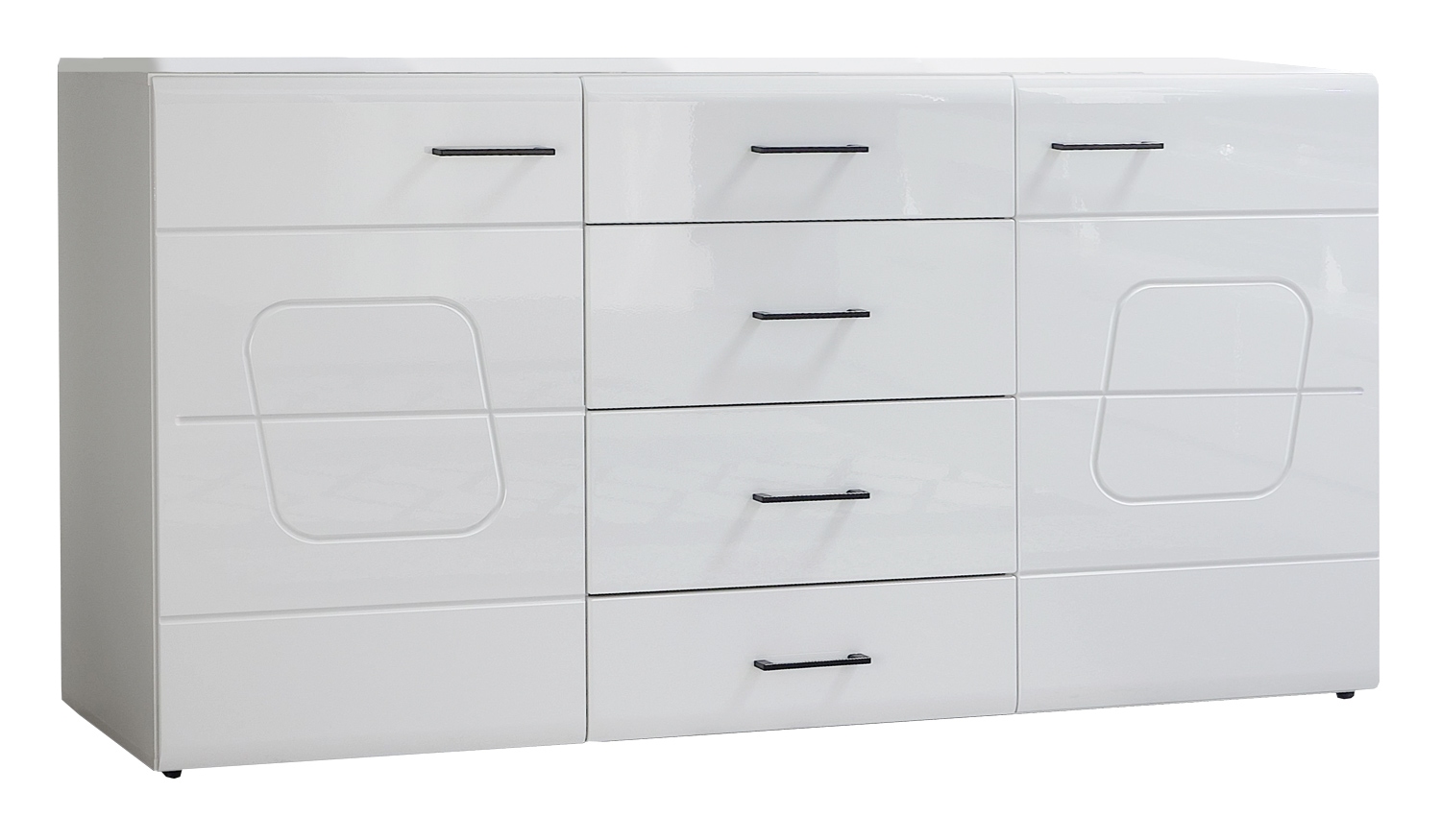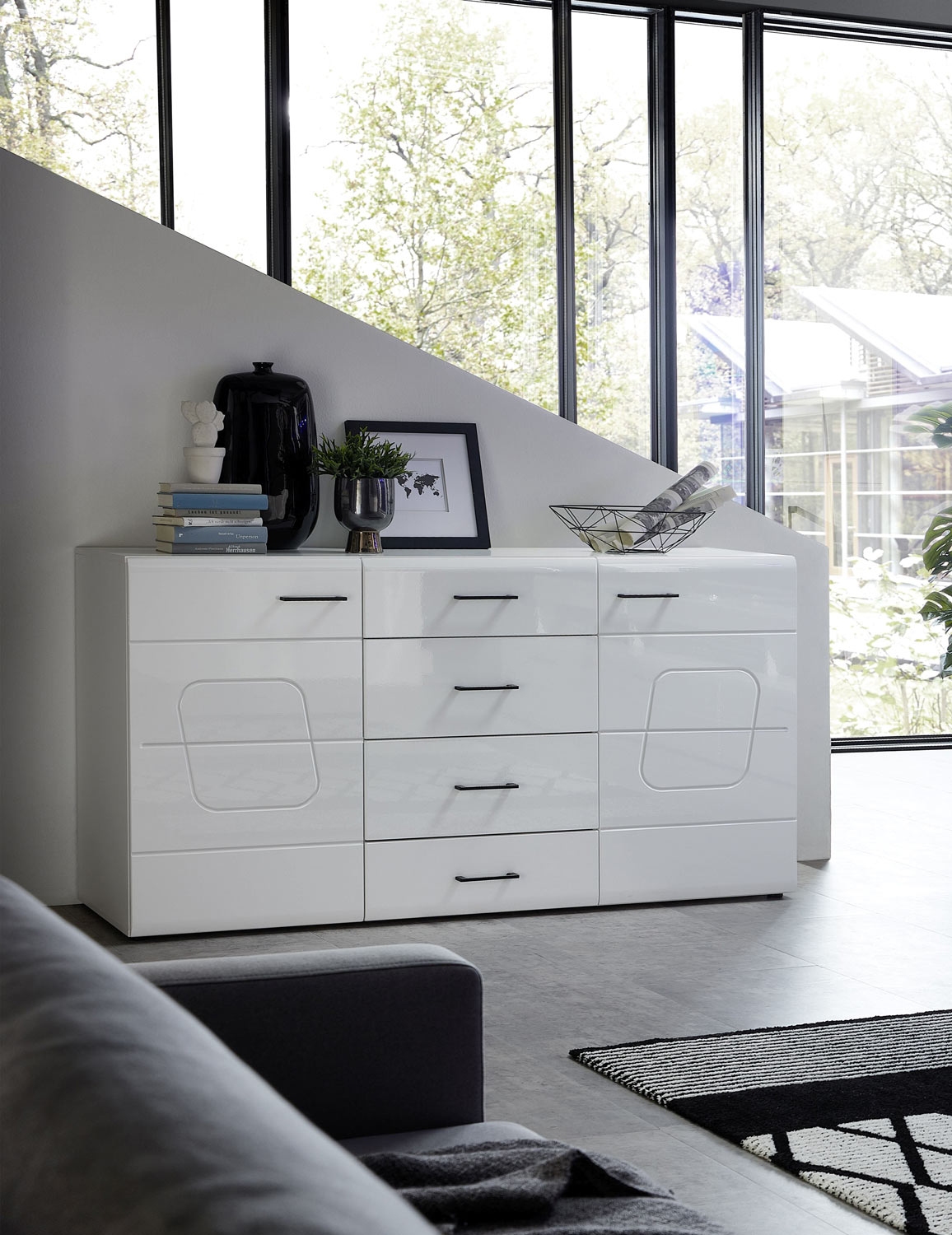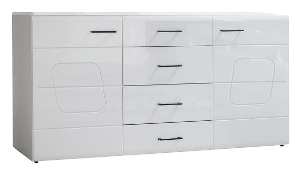 Weiß matt - Weiß Hochglanz - B 170 cm - 2 Türen - 4 Schubladen