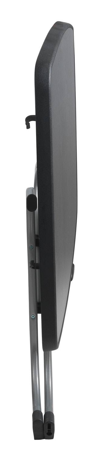 Die Tischplatte des Gartentisches besteht aus Mecalit. Einem Material, dass aus mehreren hochverdichteten Pressspanplatten in Verbindung mit einem Kunststoffmaterial entsteht. Dadurch wird die Tischplatte wetterfest, schlagfest, glutfest und säurebeständig. Außerdem ist die Tischplatte kältefest, wodurch der Tisch auch in kälteren Monaten und sogar bei Schnee im Freien stehen kann.