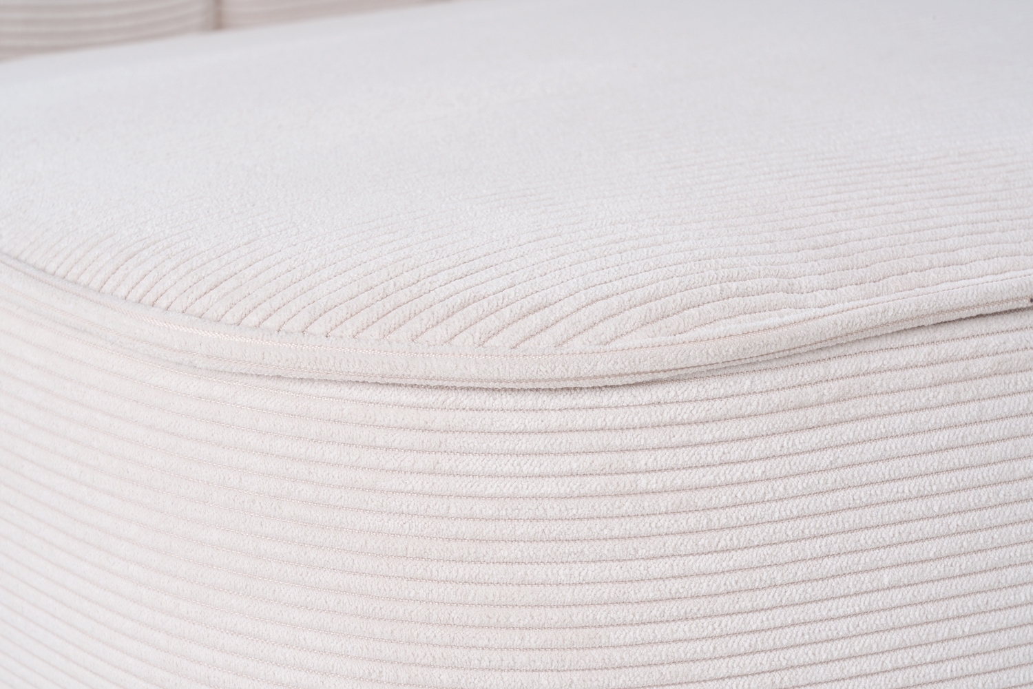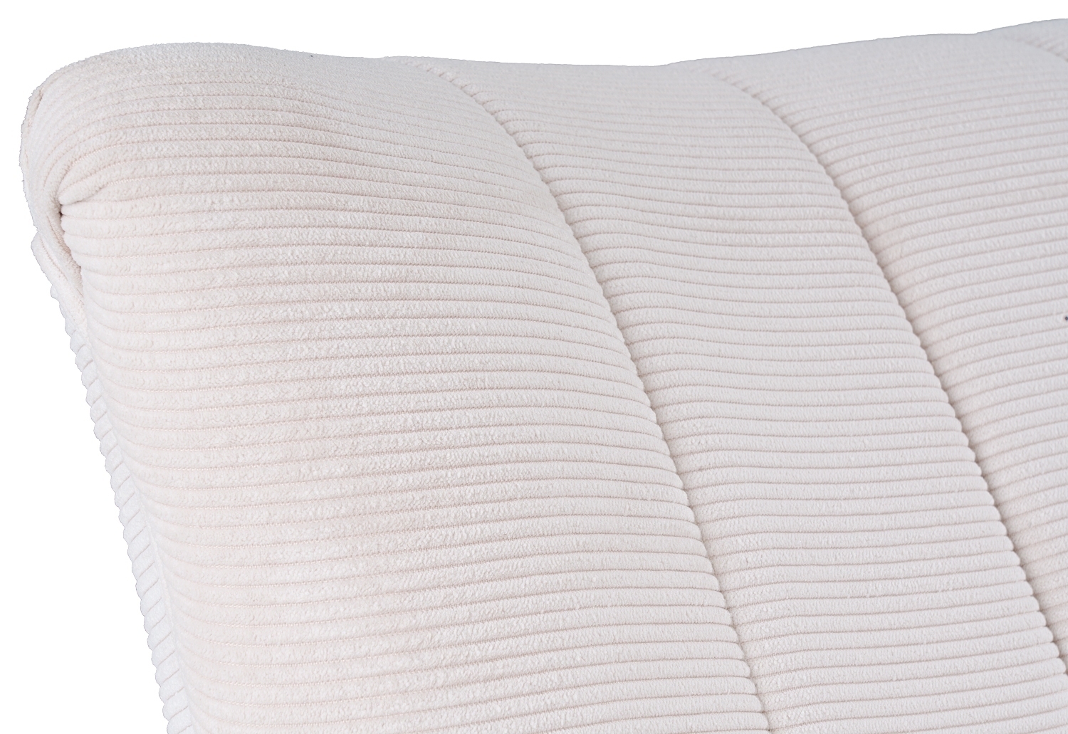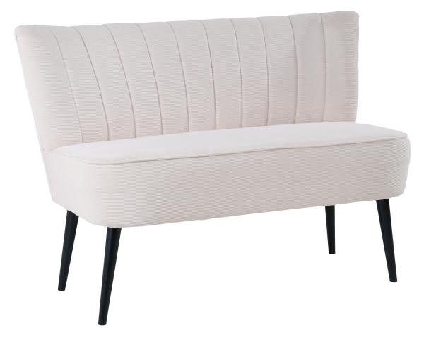 Die Sitzbank präsentiert sich in einer eleganten Farbkombination von Creme und Schwarz, mit einem ansprechenden Cordbezug. Mit einer Breite von 130 cm bietet sie ausreichend Platz für komfortables Sitzen.