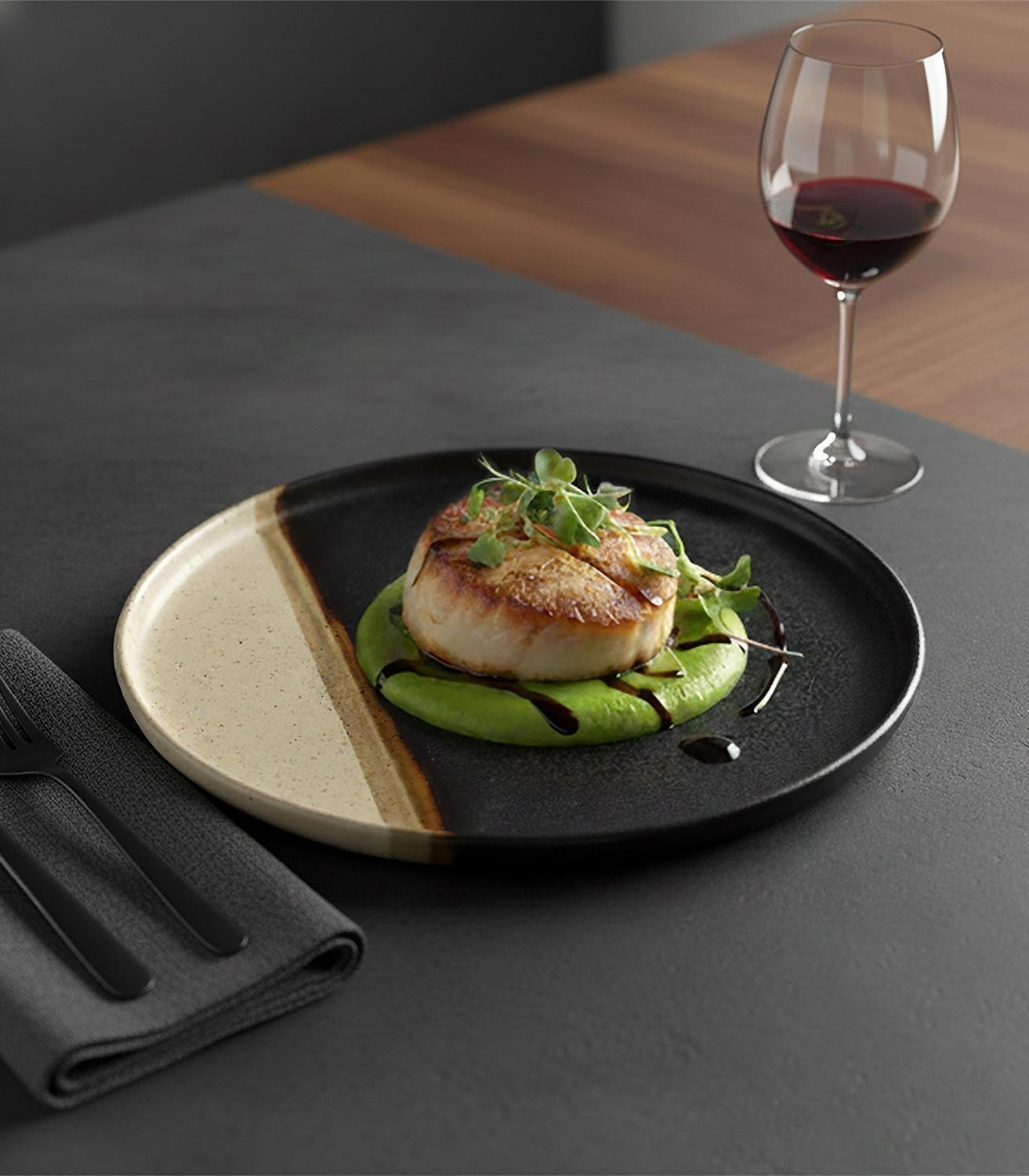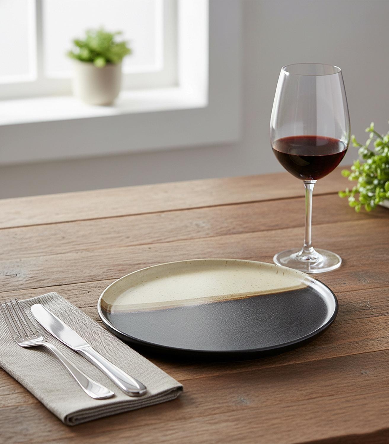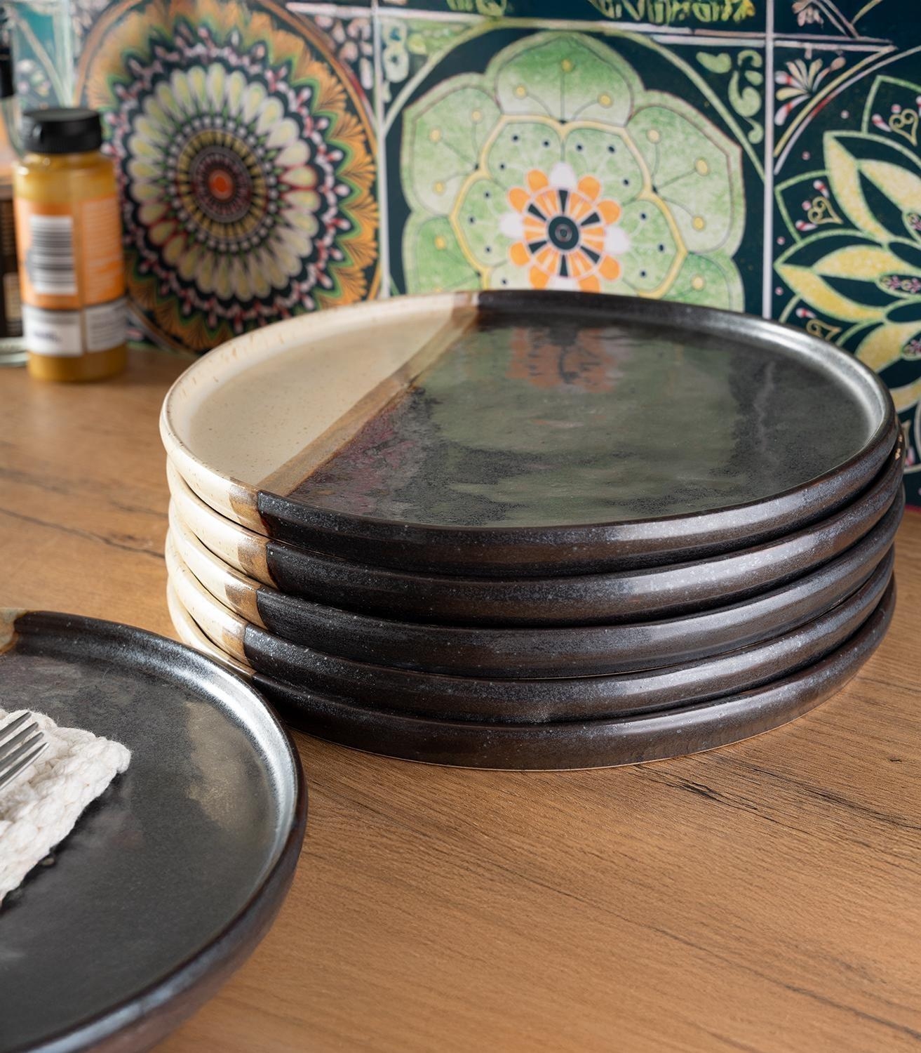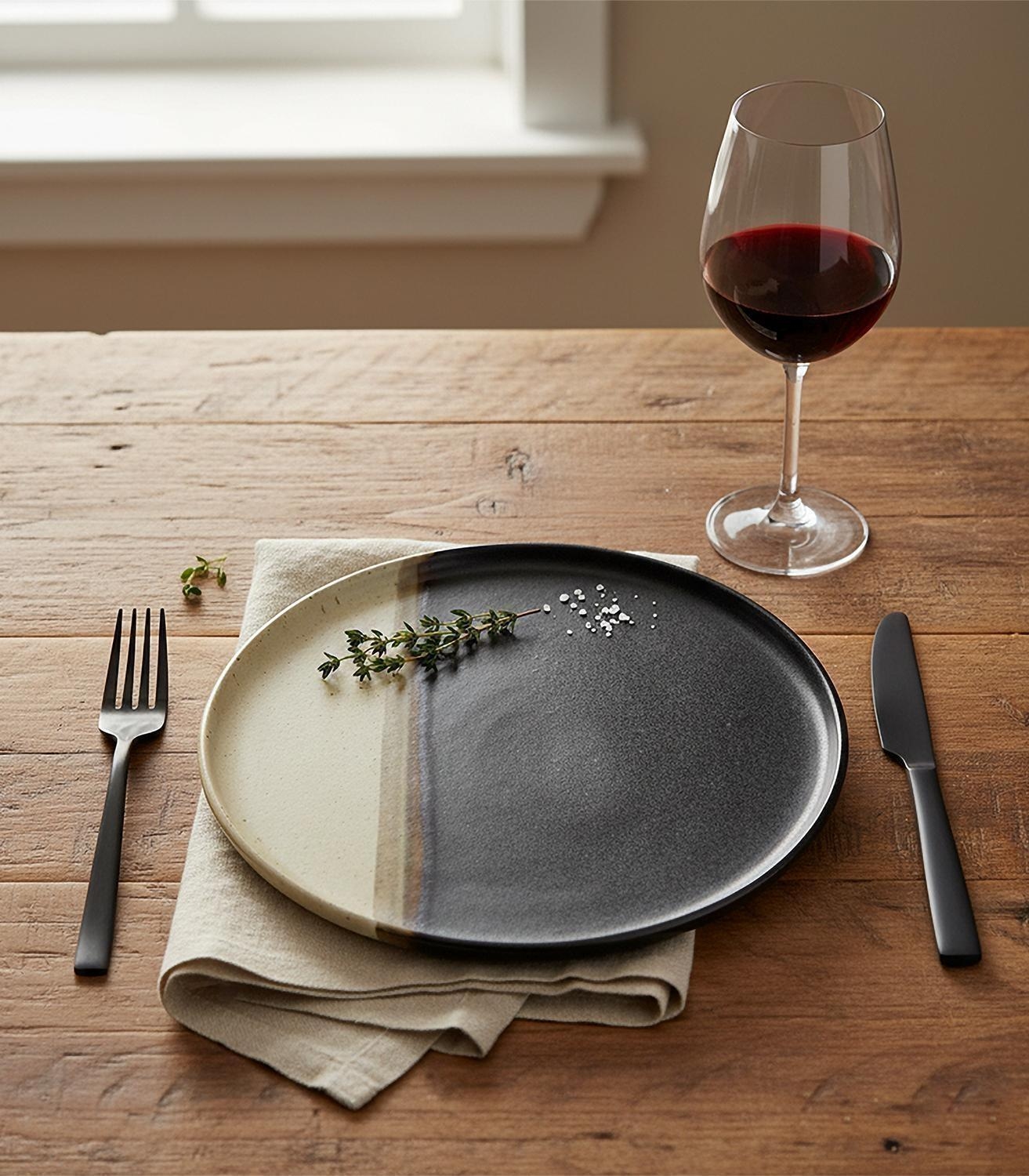 Der Speiseteller in Schwarz und Braun überzeugt durch sein modernes, elegantes Design. Mit einem Durchmesser von 27 cm bietet er ausreichend Platz für Hauptgerichte und sorgt dank seiner runden Form für eine stilvolle Tischdekoration. Gefertigt aus robuster Keramik und mit einer mattierten Oberfläche versehen, wirkt der Teller besonders edel und zeitlos. Ideal für den täglichen Gebrauch oder festliche Anlässe.