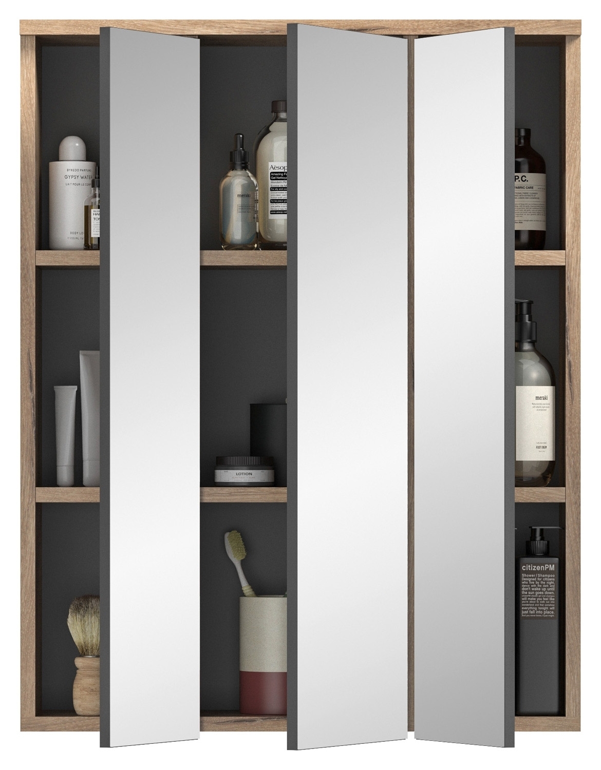 | Lieferumfang: | 1 Spiegelschrank mit 3 Türen und 6 Einlegeböden. Eine Aufsatzleuchte ist separat erhältlich |