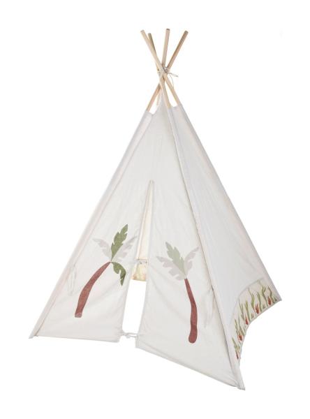 Das beige Spielzelt begeistert mit einer Breite von 103 cm, einer Höhe von 160 cm und einer Tiefe von 103 cm. Das ansprechende Palmenmotiv verleiht eine spielerische Atmosphäre. Praktische Bindebänder ermöglichen ein einfaches Verschließen. Ideal für abwechslungsreiches Spielen, Verstecken oder gemütliches Lesen – ein perfektes Zelt für fantasievolle Abenteuer.