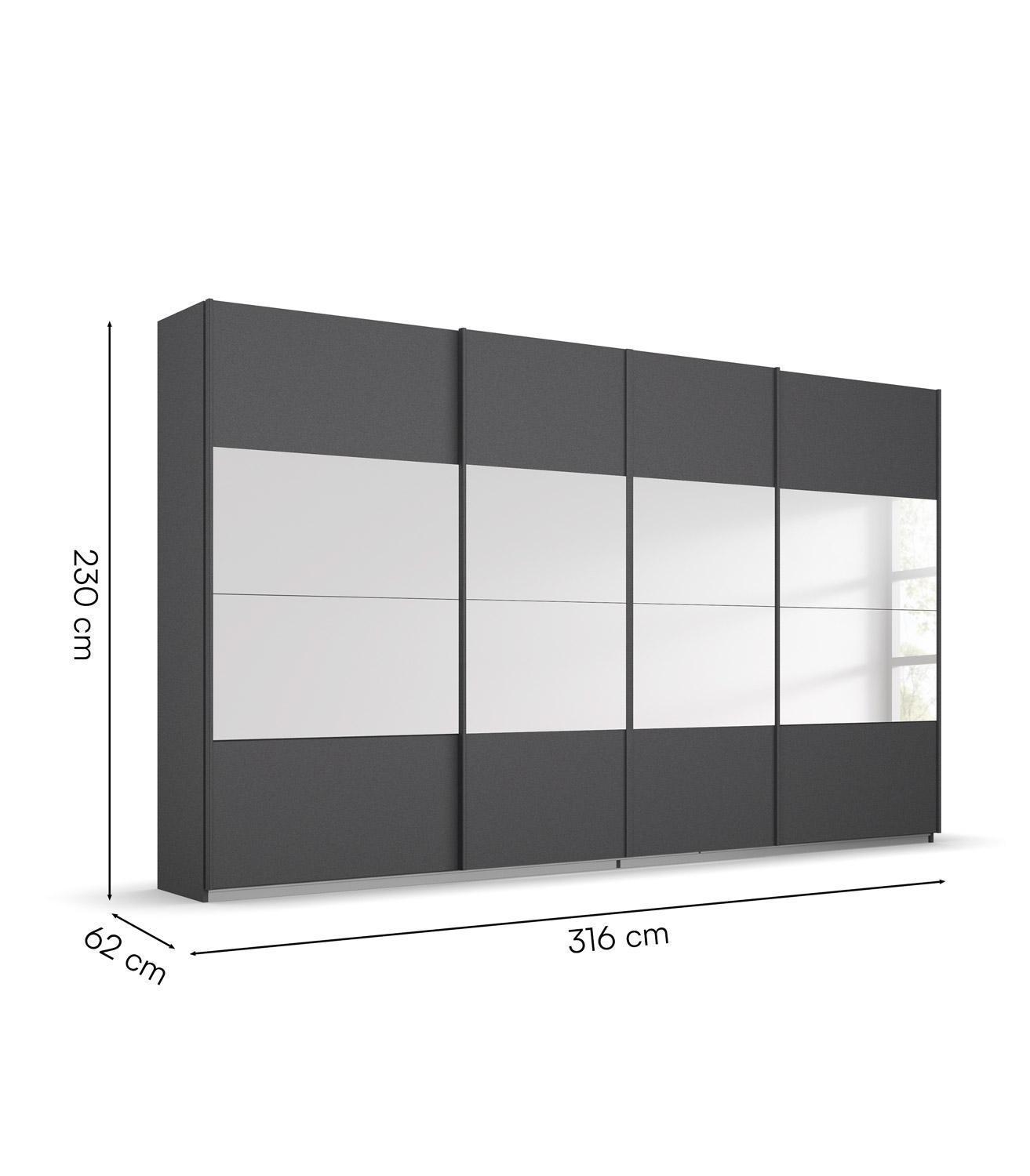 Grau Metallic - 316 x 230 cm - 4 Türen - mit Spiegel