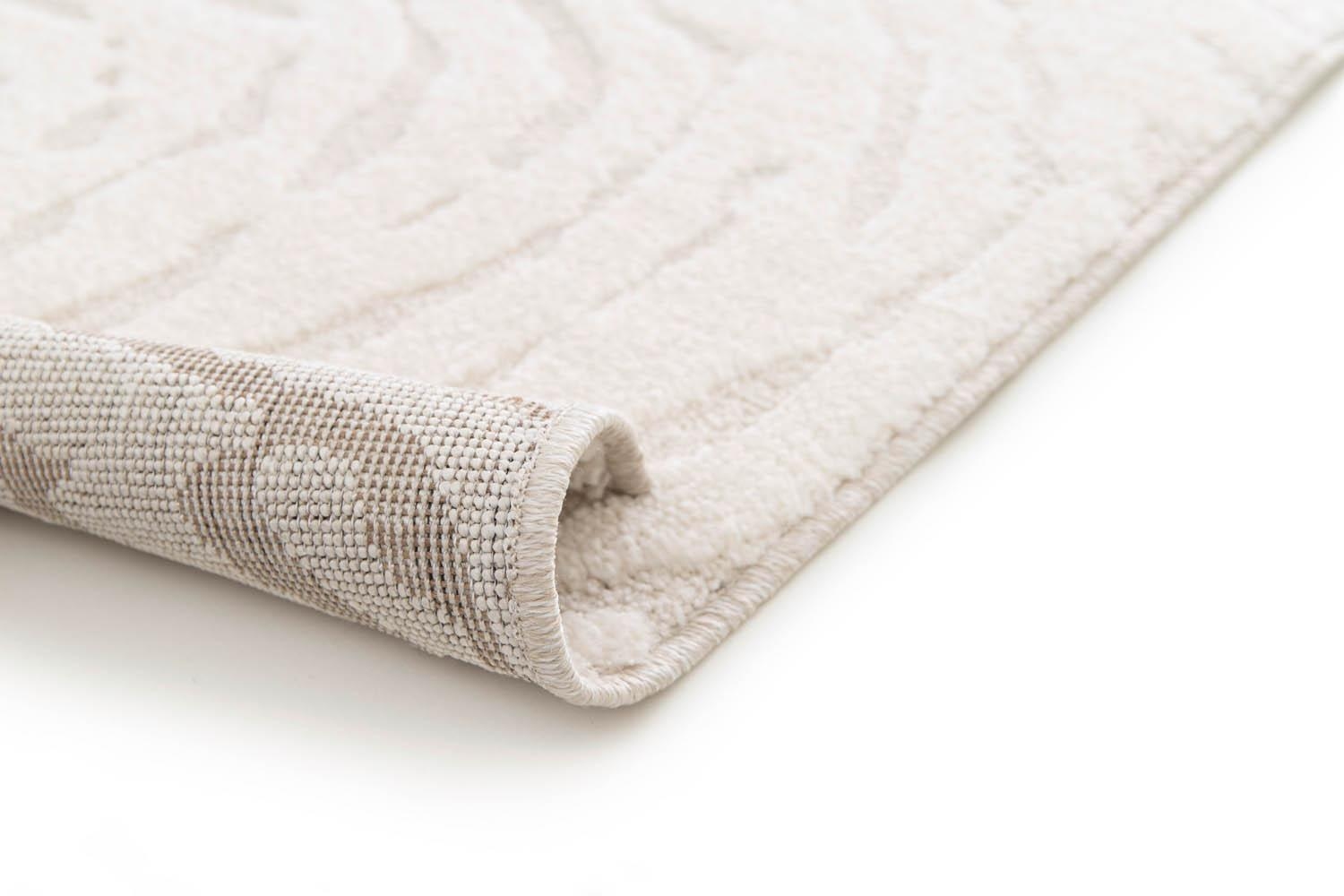 Der Teppich ist eine stilvolle und auffällige Wahl für Ihre Einrichtung. Hergestellt aus einer Mischung von Polyester und Polypropylen, präsentiert er sich in Creme mit einem markanten Zebramuster. Der Teppich misst 150 cm in der Länge und 80 cm in der Breite, mit einer Florhöhe von 9 mm. Diese Kombination aus Material und Design sorgt für eine langlebige und pflegeleichte Ergänzung zu Ihrem Wohnraum.