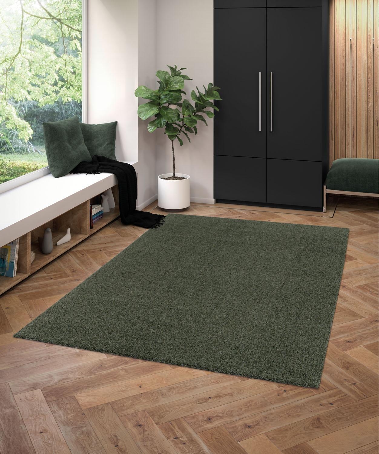 Der Maschinenwebteppich KISS besticht durch seine elegante Schlichtheit und Funktionalität. Hergestellt aus Polyester in Dunkelgrün, fügt er sich nahtlos in jede Einrichtung ein. Der einfarbige Teppich ohne Musterung ist bei Temperaturen bis zu 40 °C waschbar und trocknergeeignet, was die Pflege besonders einfach macht. Mit einer Länge von 60 cm und einer Breite von 115 cm passt er perfekt in mittelgroße Räume. Die Florhöhe von 12 mm sorgt für ein angenehmes Laufgefühl und zusätzlichen Komfort.