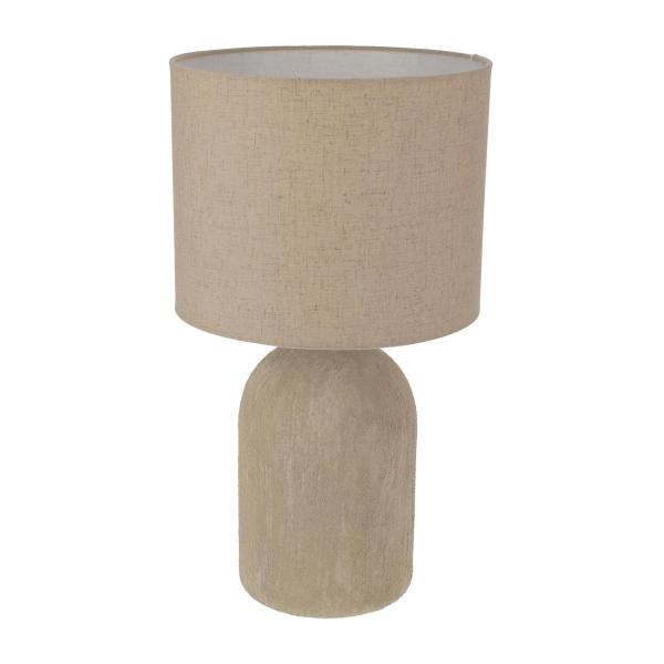 Die Tischlampe MYRIEL ist aus braunem Stein gefertigt und mit einem braunen Textillampenschirm ausgestattet. Sie wird über einen Schnurschalter bedient. Die Lampe hat einen Durchmesser von 25 cm und eine Höhe von 31 cm. Sie ist für ein Leuchtmittel mit E14-Fassung ausgelegt, das nicht im Lieferumfang enthalten ist. Das Leuchtmittel ist austauschbar und kann eine Leistung von bis zu maximal 40 Watt haben.