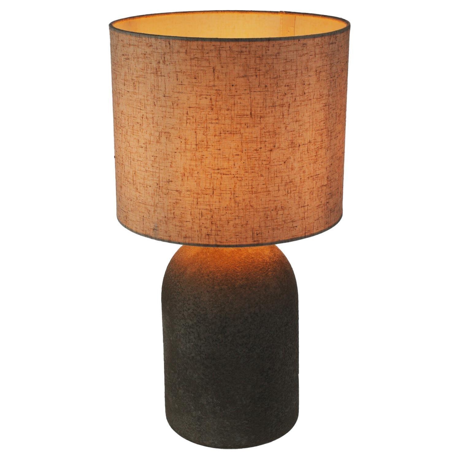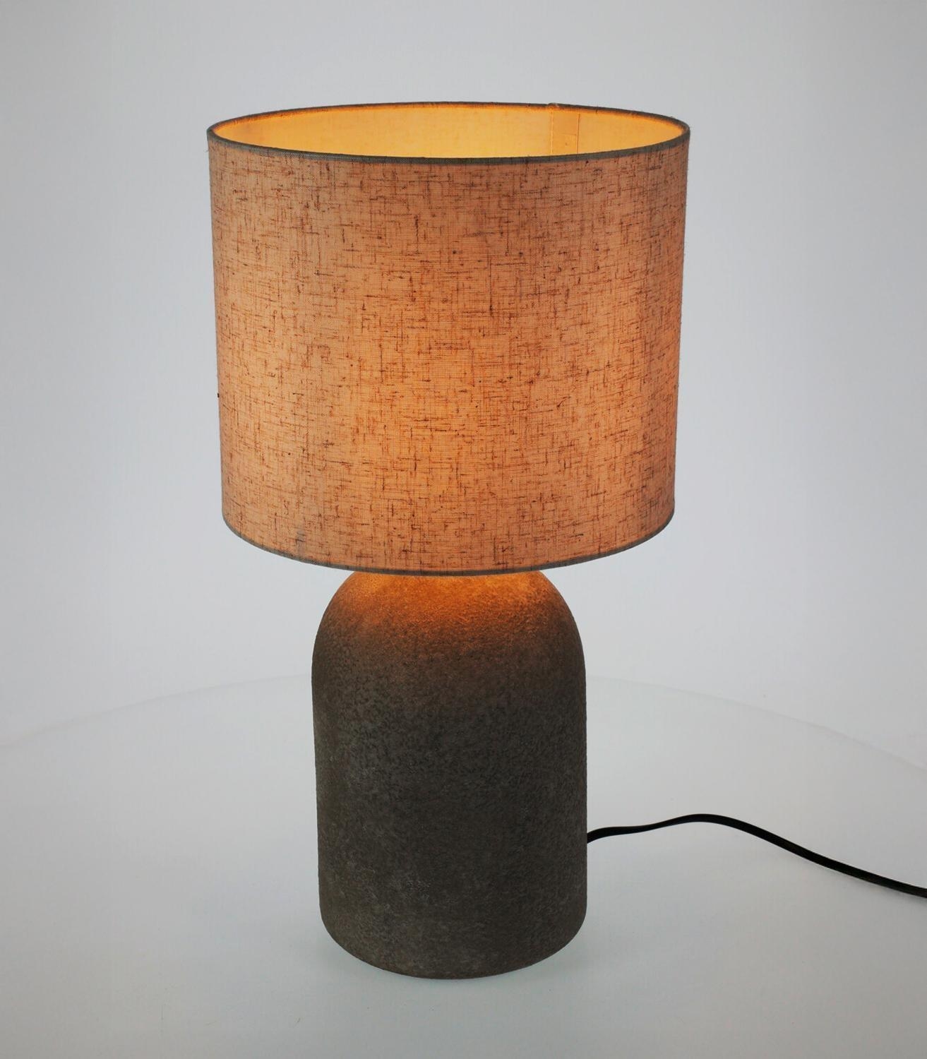 Die Tischlampe MYRIEL ist aus schwarzem Stein gefertigt und mit einem beigen Textillampenschirm ausgestattet. Sie wird über einen Schnurschalter bedient. Die Lampe hat einen Durchmesser von 25 cm und eine Höhe von 31 cm. Sie ist für ein Leuchtmittel mit E14-Fassung ausgelegt, das nicht im Lieferumfang enthalten ist. Das Leuchtmittel ist austauschbar und kann eine Leistung von bis zu maximal 40 Watt haben.