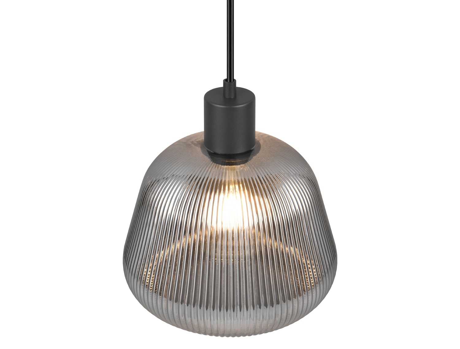 Die Pendelleuchte TARIFA von TRIO Leuchten verbindet modernes Design mit Flexibilität. Gefertigt aus schwarzem Metall, wird sie durch einen chrombedampften Rauchglas-Lampenschirm stilvoll ergänzt. Dieser Lampenschirm ist in der Höhe verstellbar, was eine individuelle Anpassung ermöglicht. Mit einem Durchmesser von 22 cm und einer Höhe von 150 cm bietet die Leuchte Platz für ein Leuchtmittel des Typs E27, das austauschbar ist. Das Leuchtmittel ist nicht im Lieferumfang enthalten und darf eine maximale Leistung von 40 Watt haben.