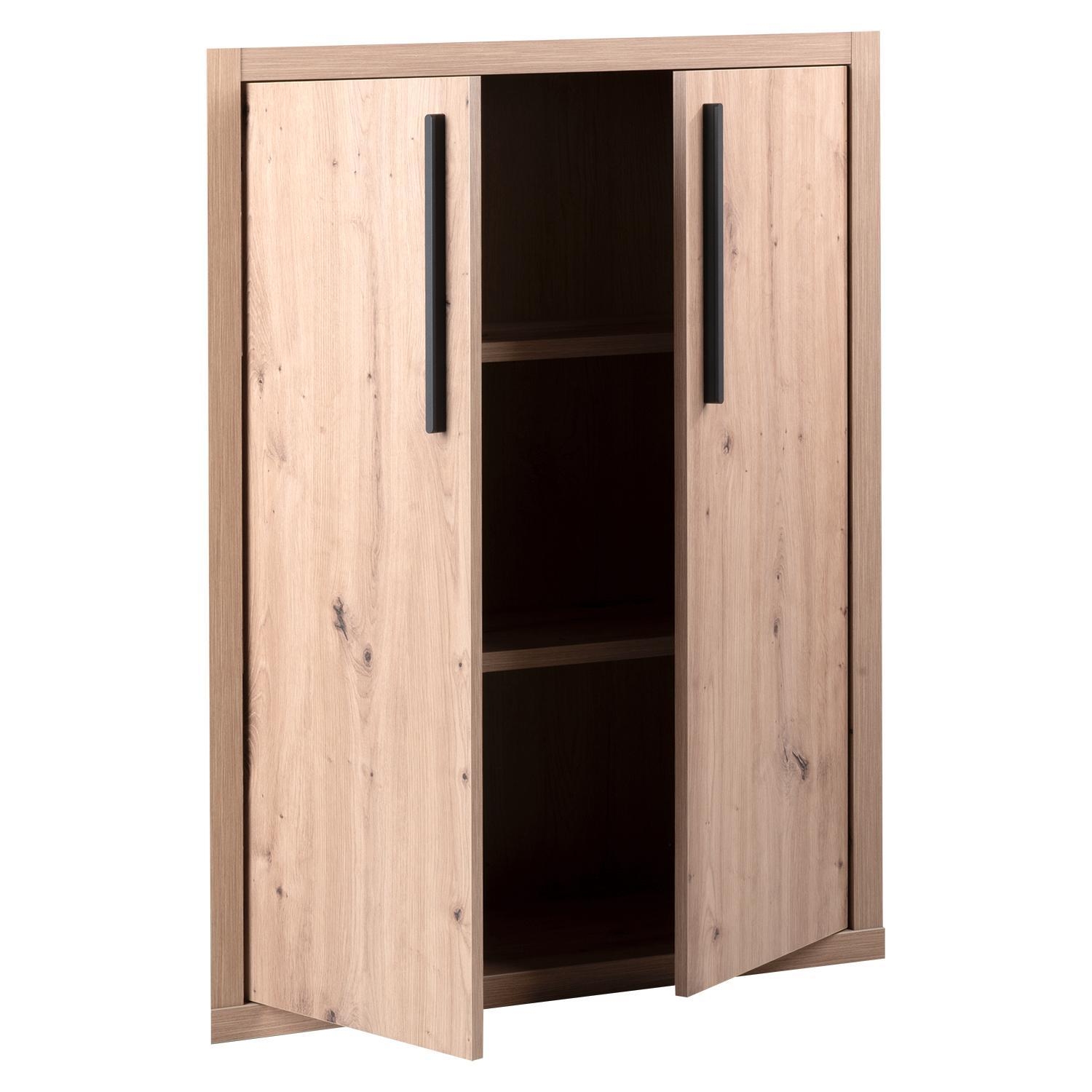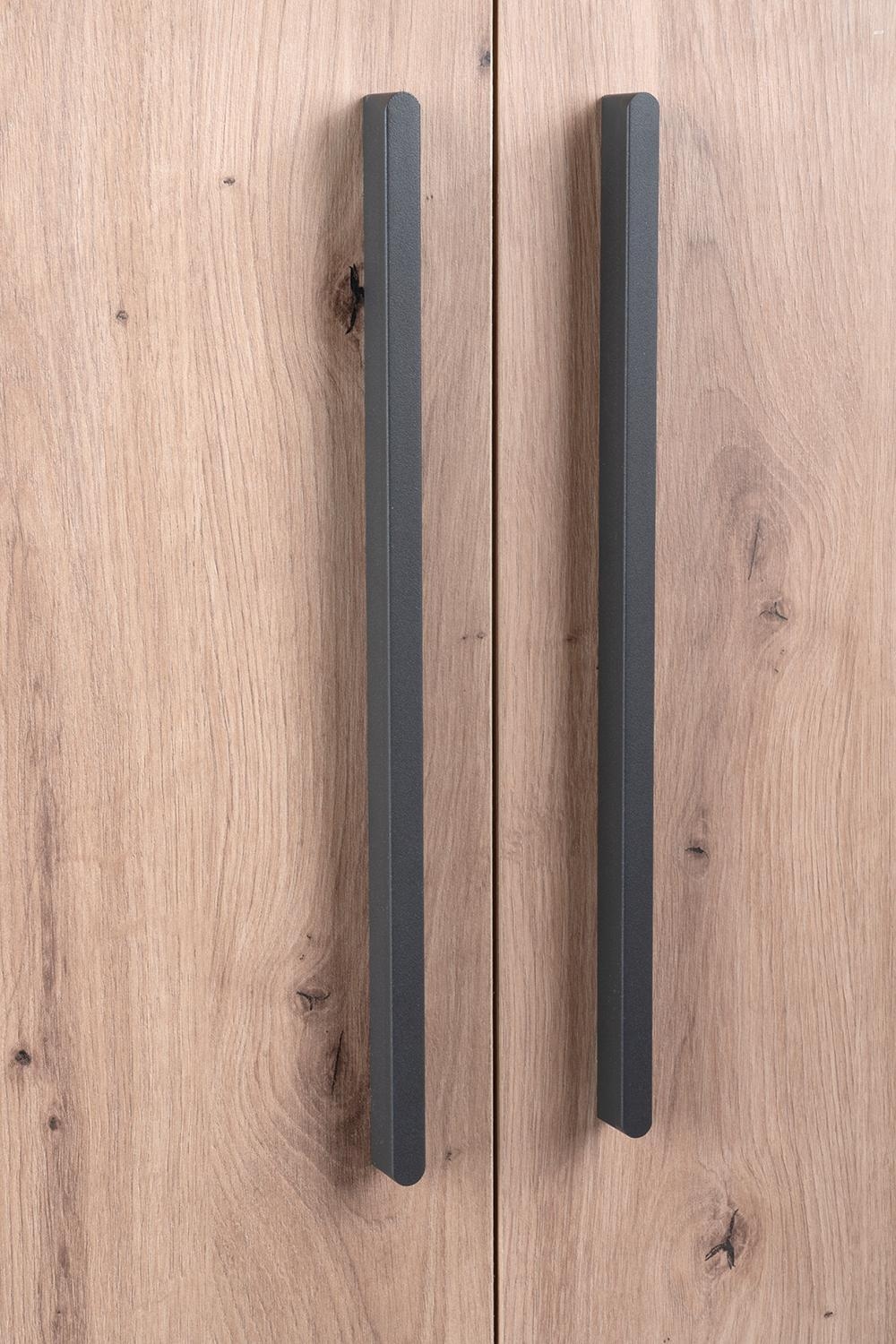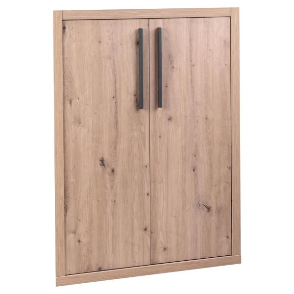 Das Türen-Set REGINE ist in Artisan Eiche Dekor gestaltet und wird als 2er Set geliefert. Die Türen sind mit schwarzen Griffen ausgestattet und dienen als praktische Erweiterung für Büro- und Aktenregale. Zum Lieferumfang gehören die passenden Scharniere sowie die erforderlichen Schrauben. Die Maße betragen 74 cm in der Breite und 101 cm in der Höhe.