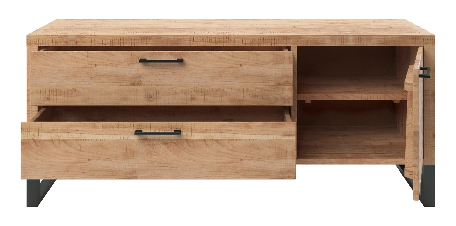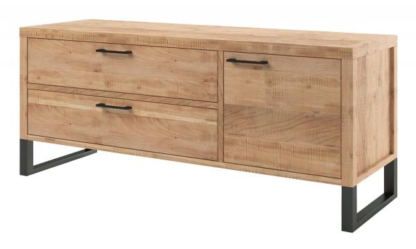 146 x 62 cm - 1 Tür - 2 Schubladen - Akazie massiv sägerau - Metall