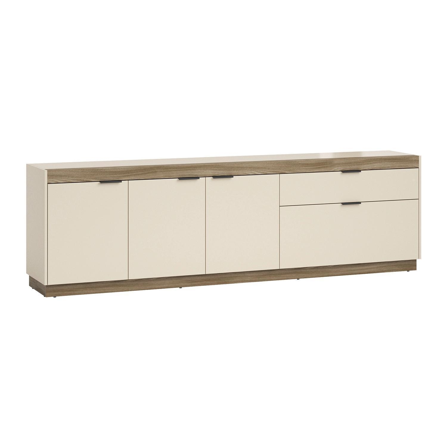 228 x 69 cm - 2 Türen - 1 Klappe - 1 Schublade - Praline Elm Dekor - Sandgrau