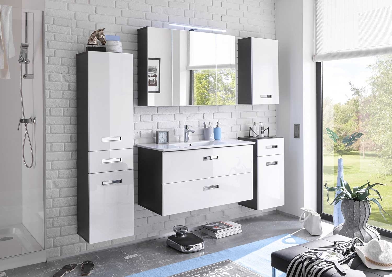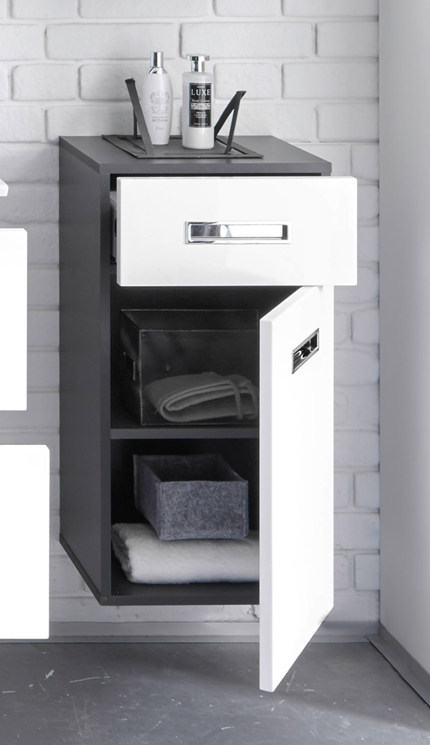Weiß Hochglanz - Grau - 1 Tür - 1 Schublade