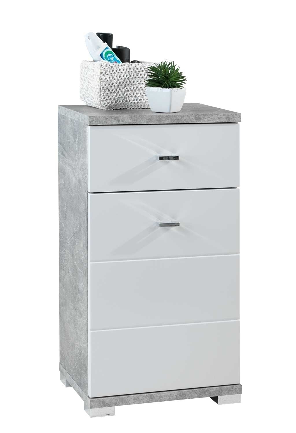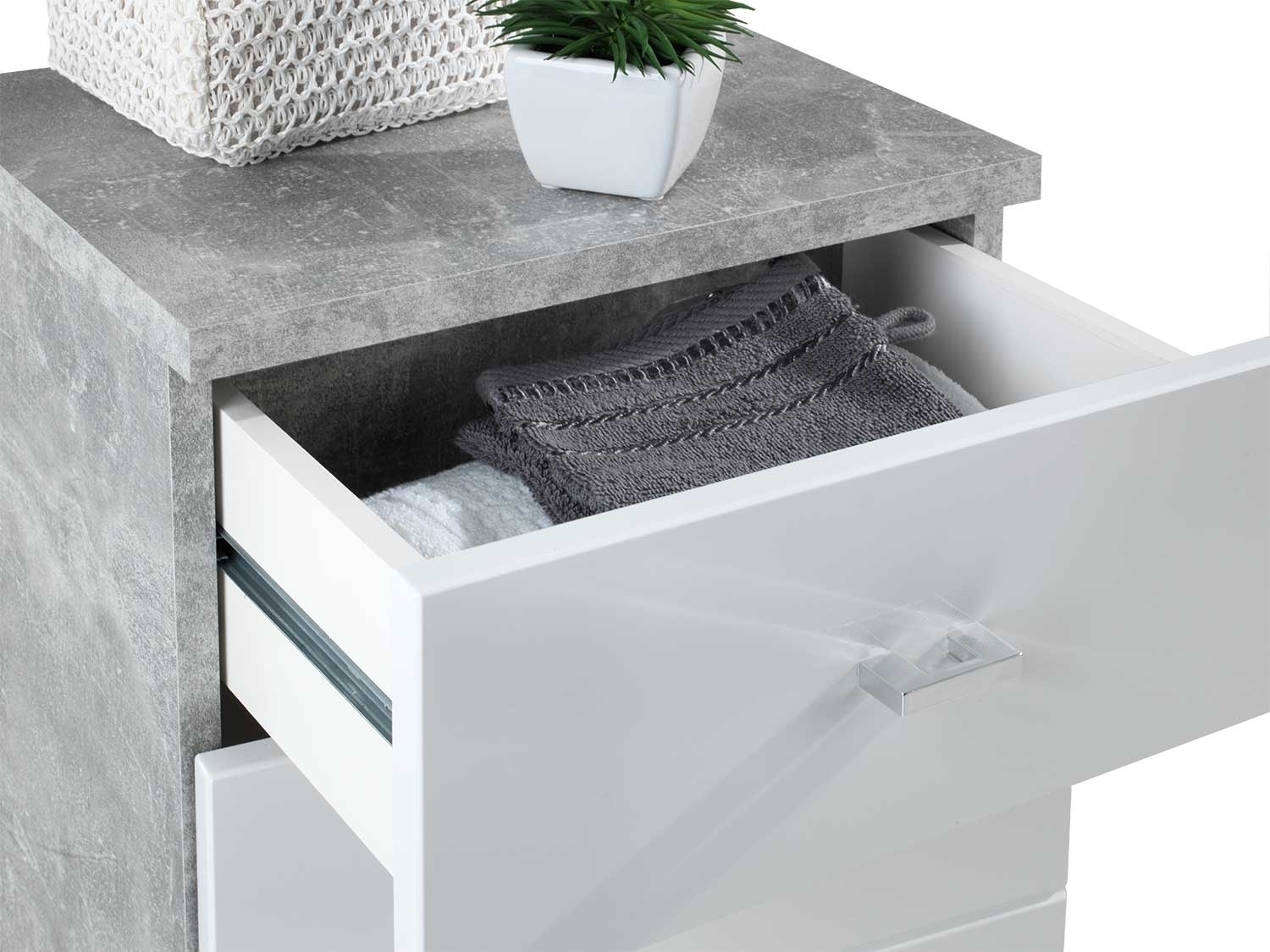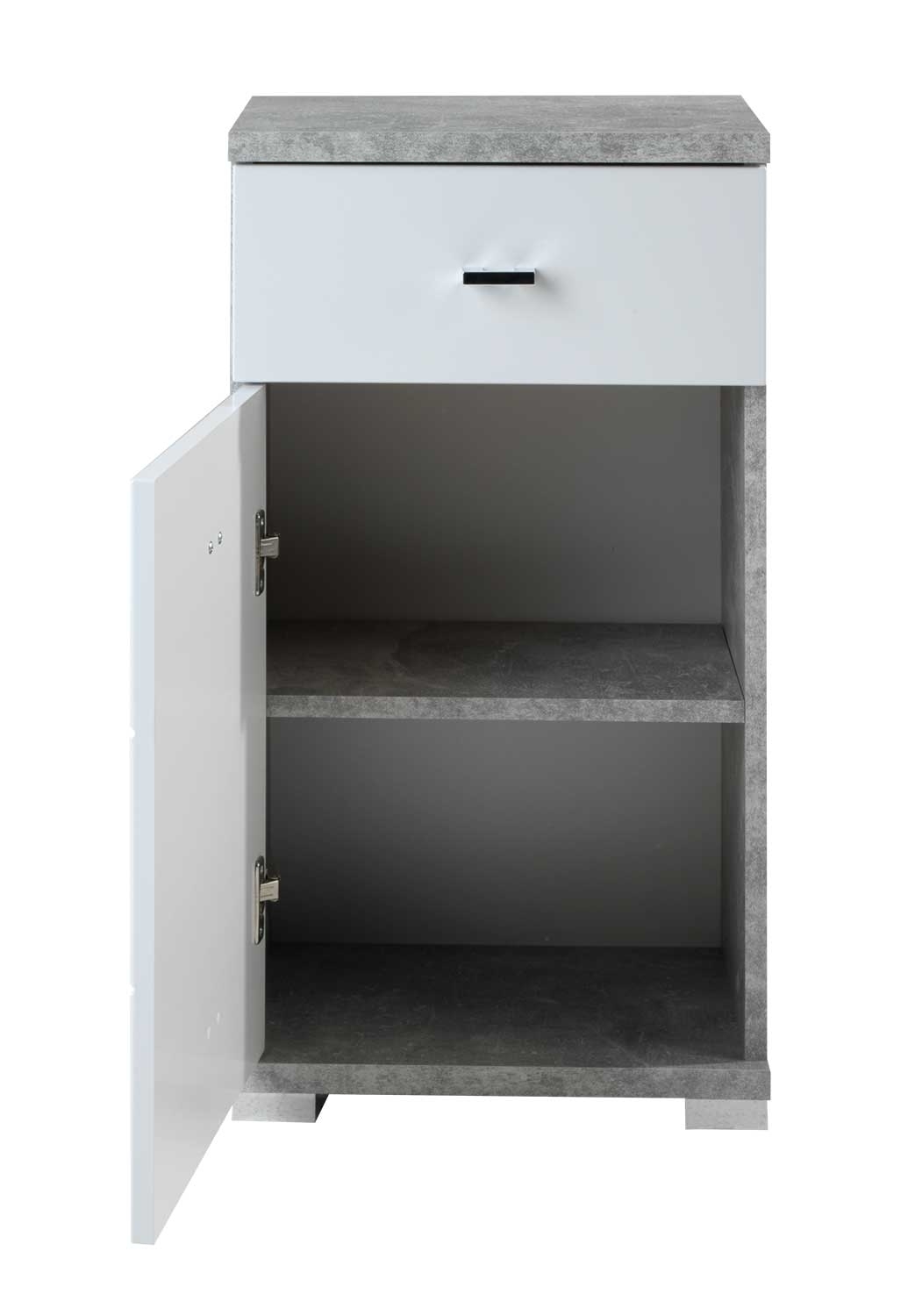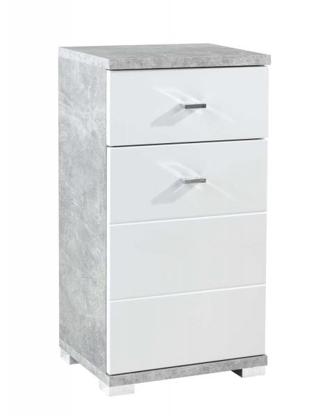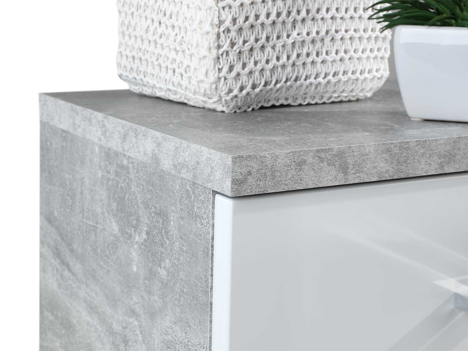 Weiß Hochglanz - Betondekor - 1 Tür - 1 Schublade