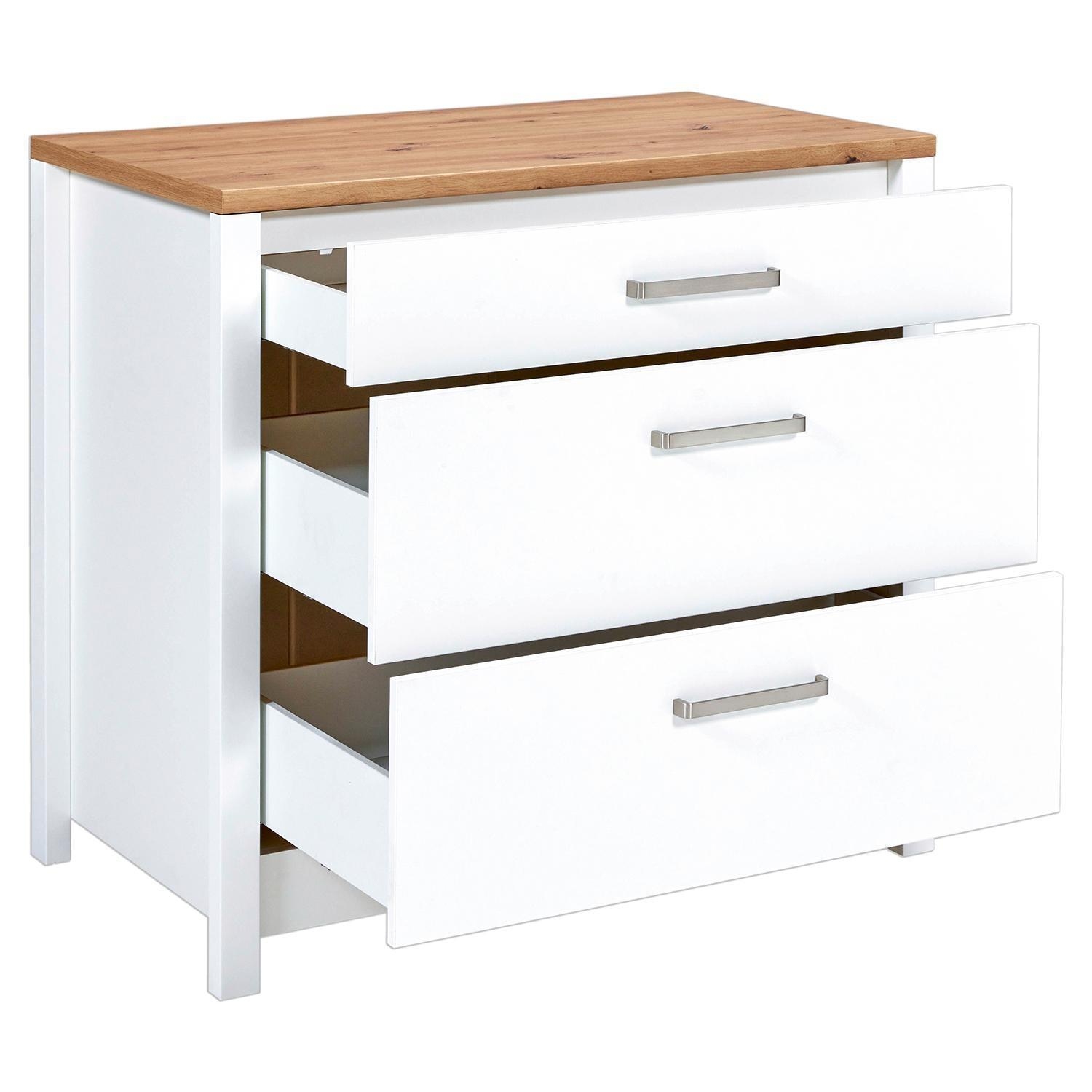 B 100 cm - 3 Schubladen - Artisan Eiche Dekor - Weiß