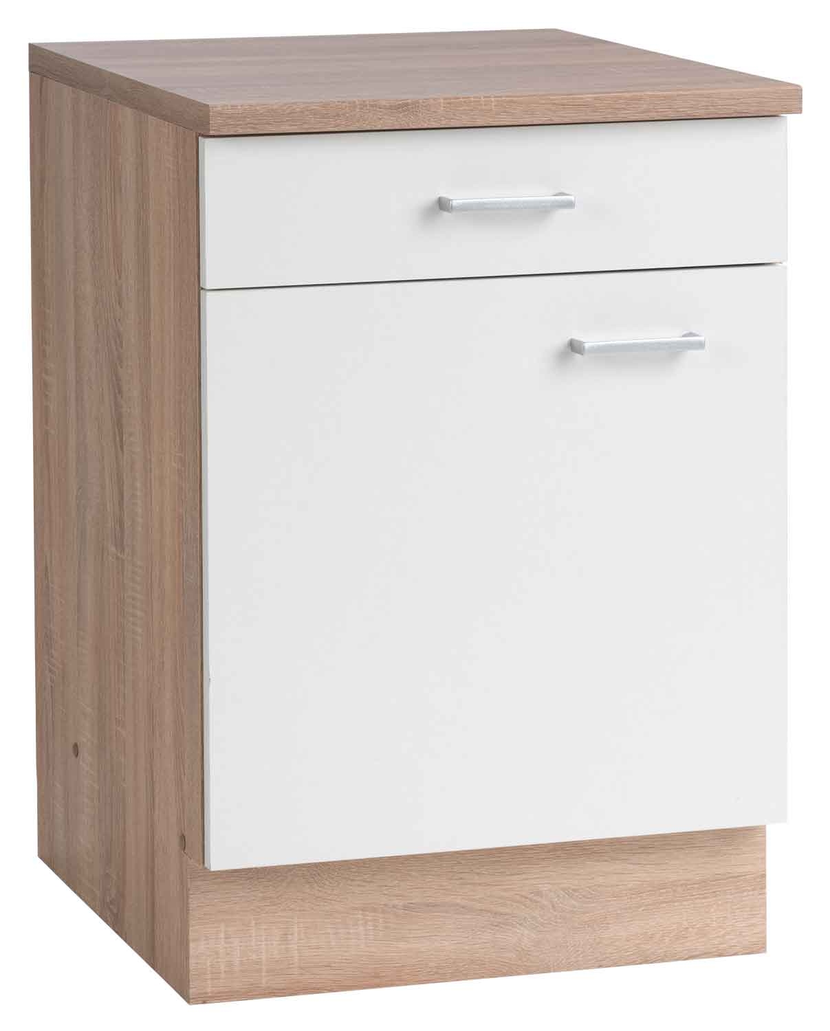Eiche Sonoma Dekor - Weiß - B 60 cm - 1 Schublade - 1 Tür