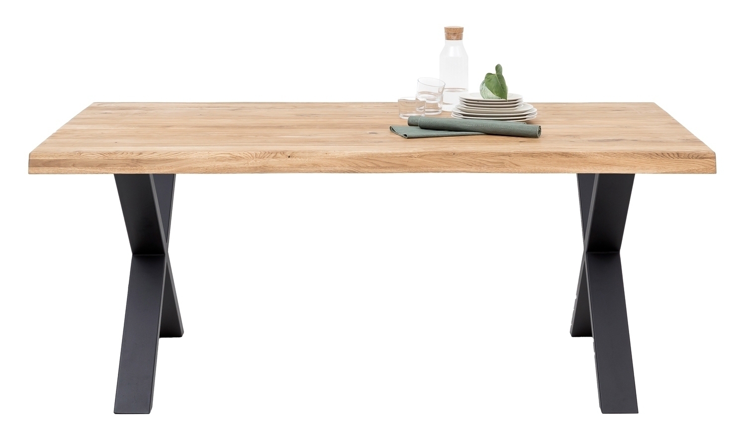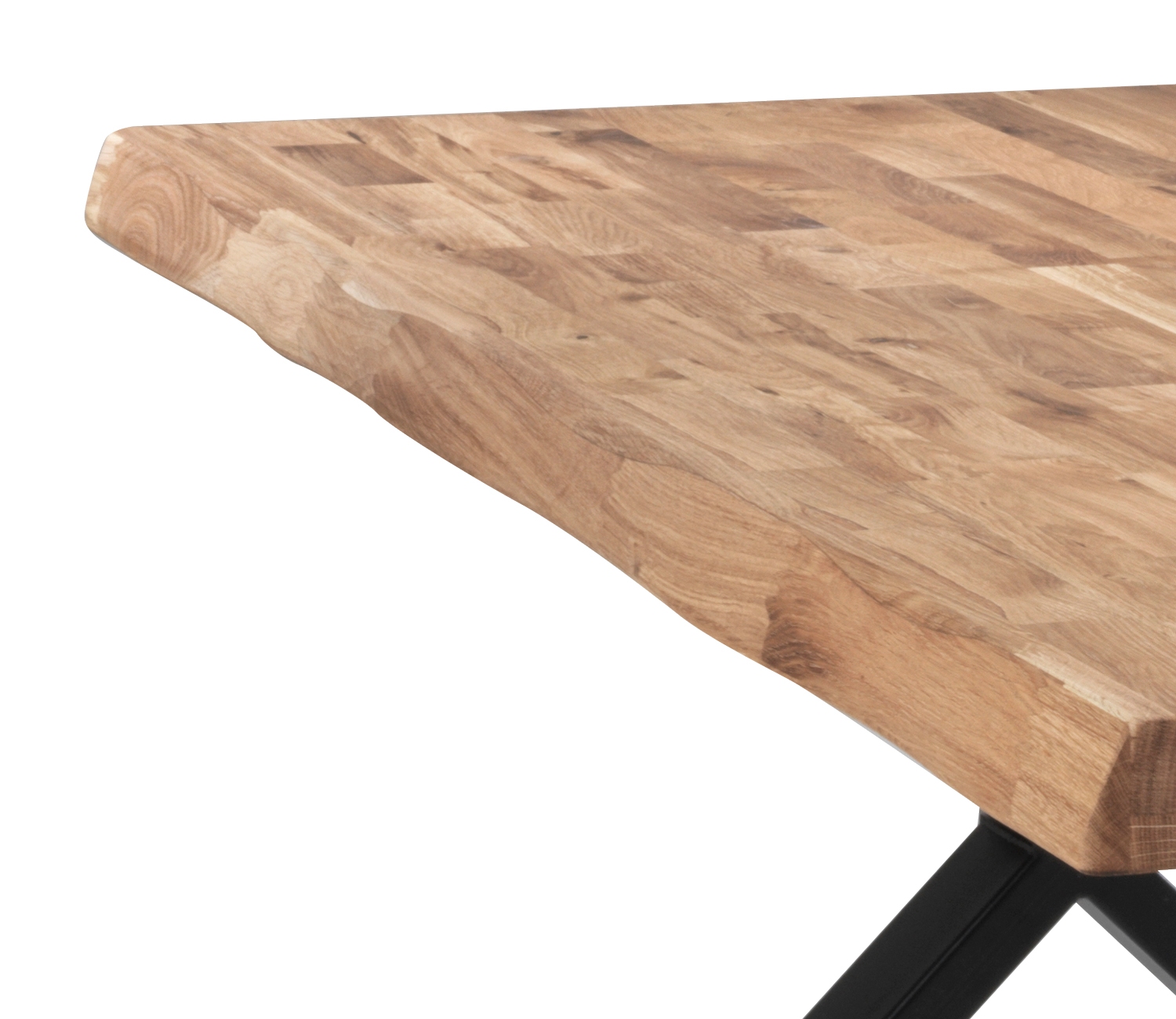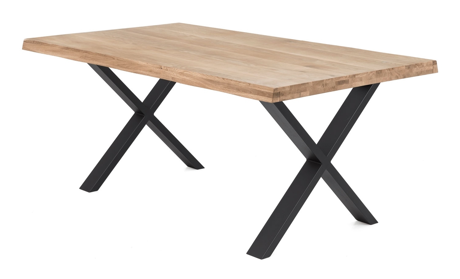 180 x 100 cm - Eiche massiv geölt - X-Gestell - mit Baumkante
