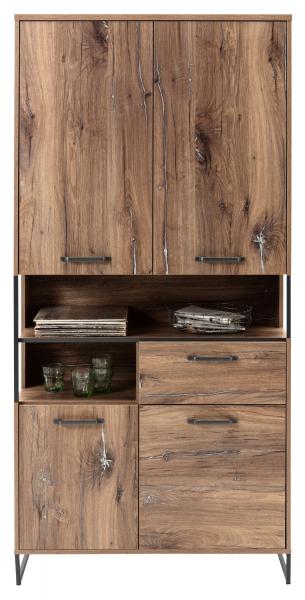Flagstaff Eiche Dekor - Schwarz - Metall - B 95 cm - 4 Türen - 1 Schublade