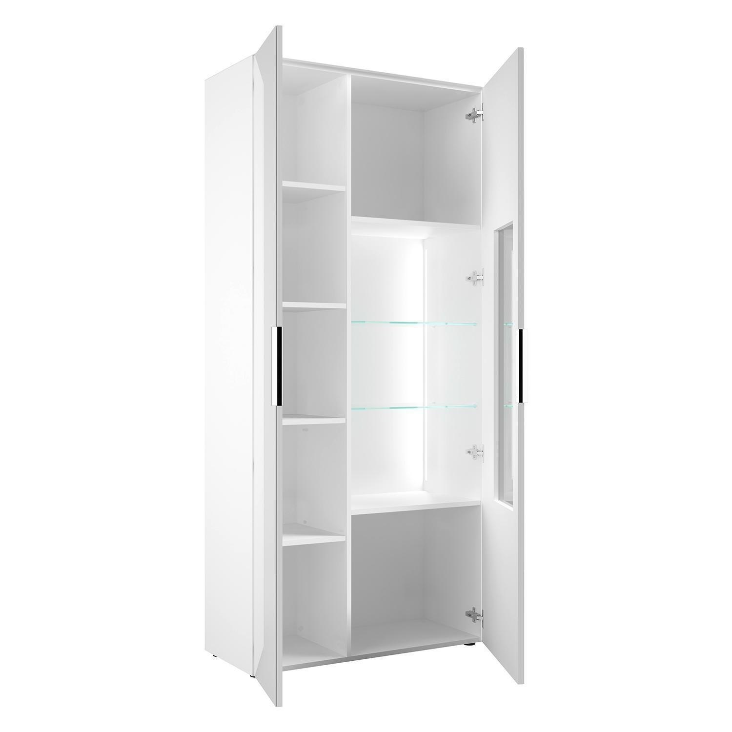90 x 197 cm - 2 Türen - Weiß matt - Weißglas - mit LED-Beleuchtung