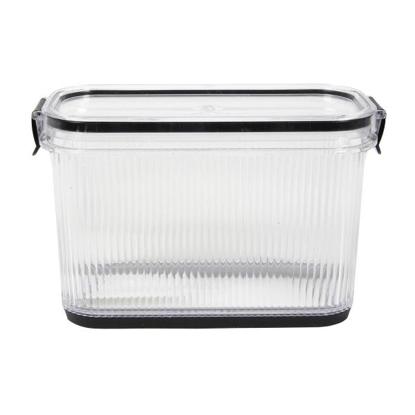 Die Vorratsdose REVILO ist eine transparente Aufbewahrungslösung aus Kunststoff und eignet sich zur ordentlichen Lagerung verschiedener Lebensmittel oder Haushaltsartikel. Mit einer Größe von 19 x 9 x 12 cm bietet sie ein Fassungsvermögen von 1 Liter und ist damit kompakt sowie platzsparend einsetzbar. Der praktische Clipdeckel ermöglicht ein einfaches Öffnen und Schließen. Die Rillenoptik verleiht der Vorratsdose eine strukturierte Oberflächengestaltung.