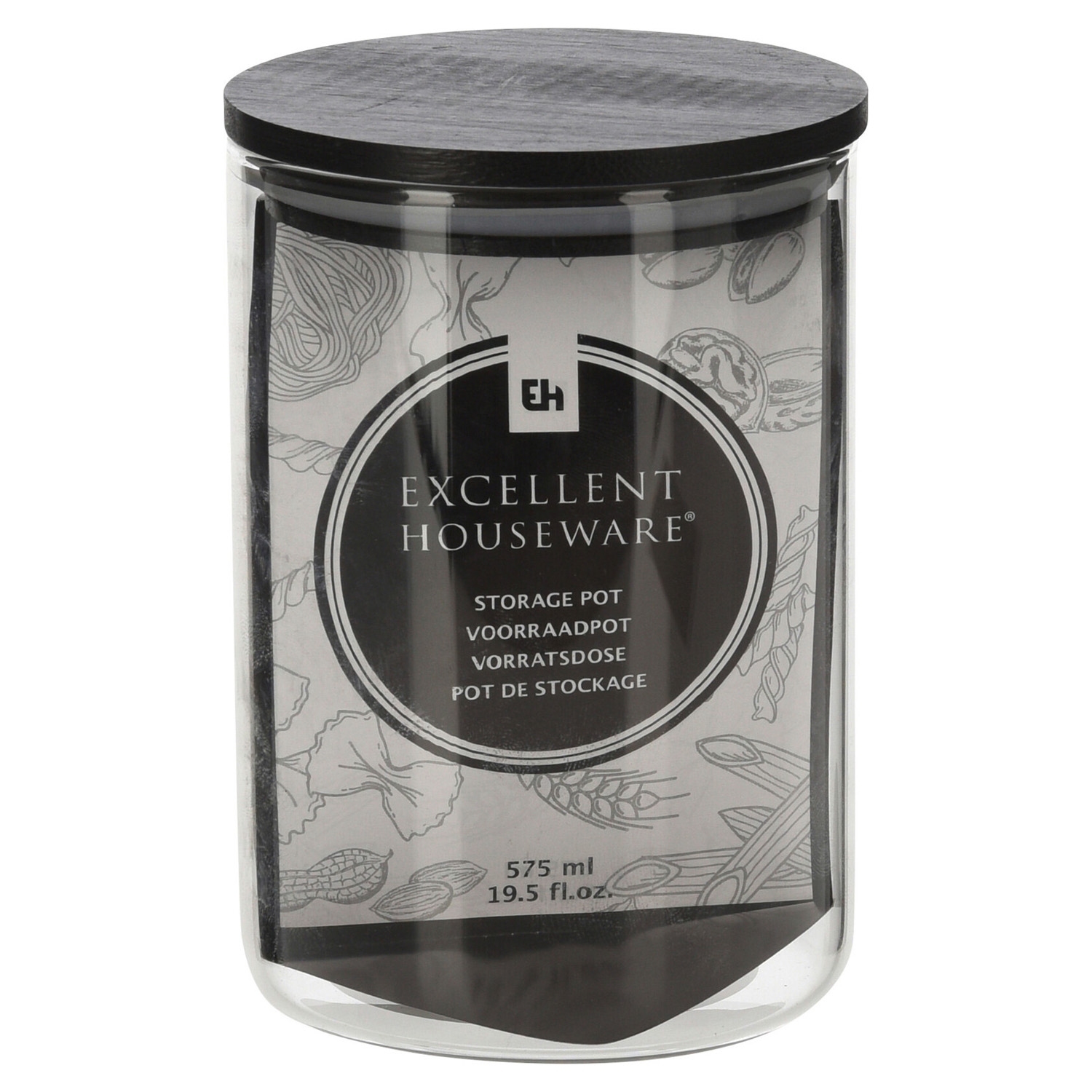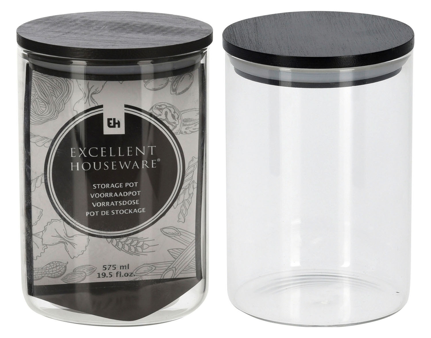 H 13 cm - Borosilikatglas - mit schwarzem Bambusdeckel - 575 ml