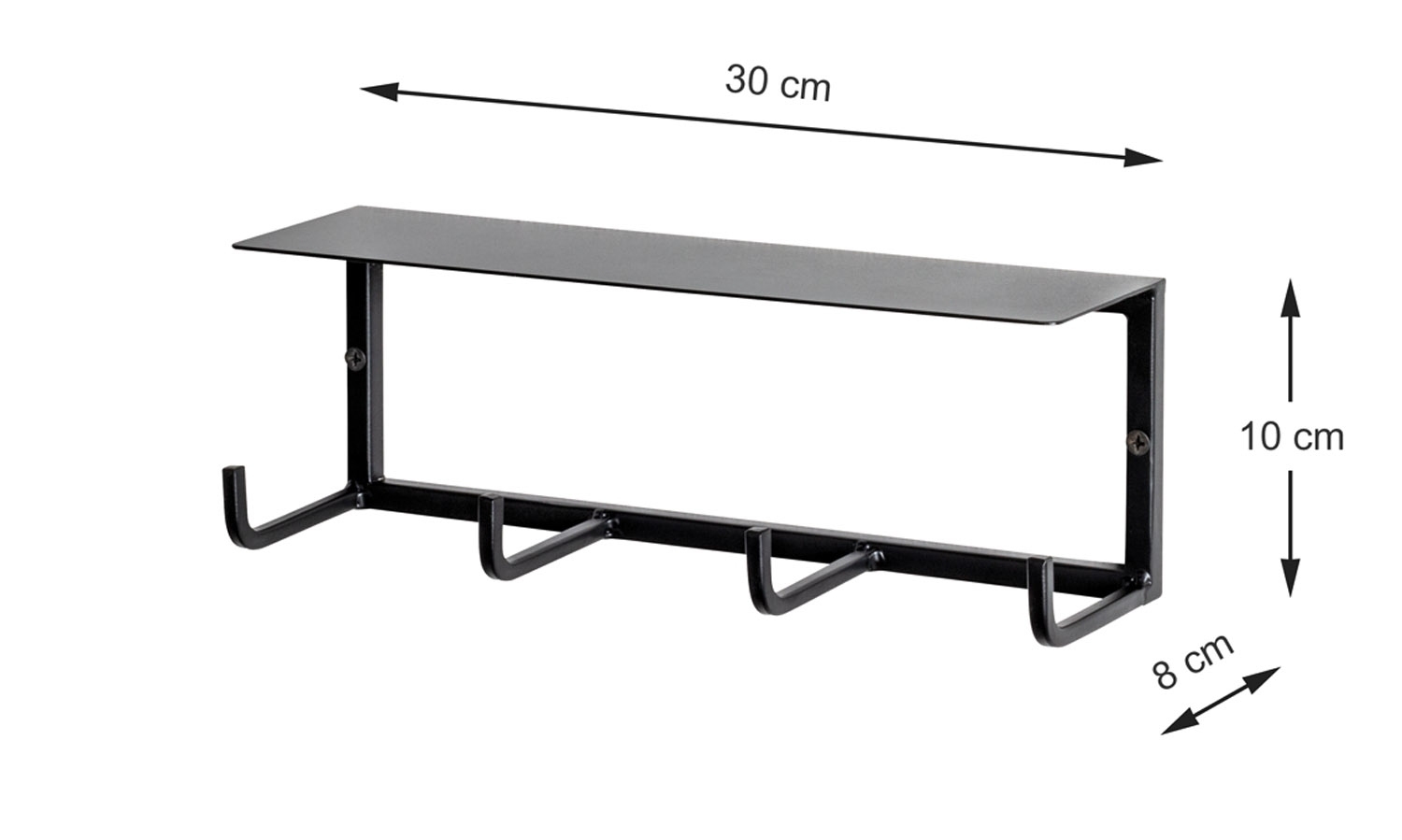 | Lieferumfang: | 1 Wandgarderobe mit 1 Ablagefläche und 4 Haken |