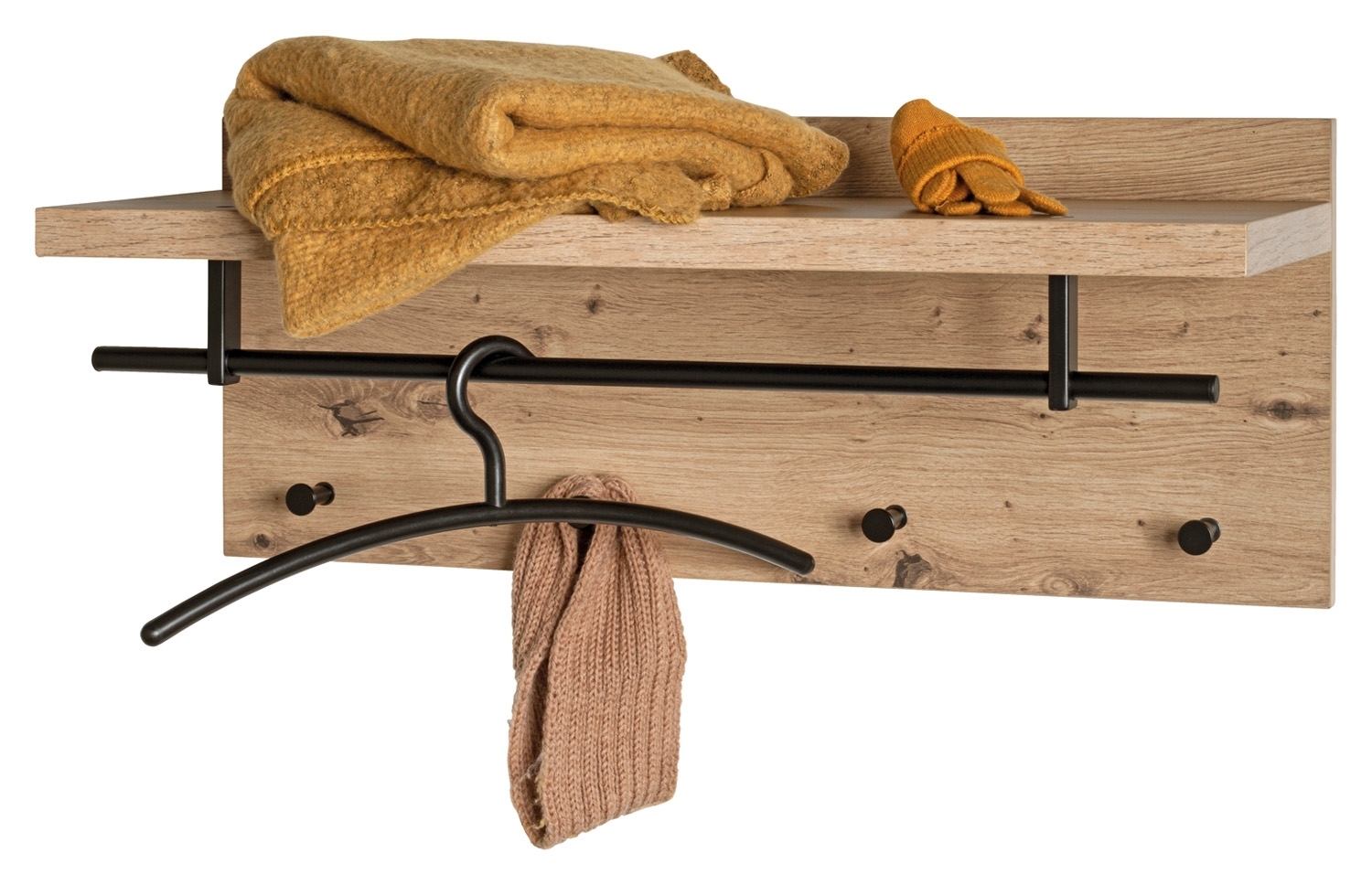 | Lieferumfang: | 1 Wandgarderobe mit 1 Kleiderstange, 1 Hutablage und 4 Haken |